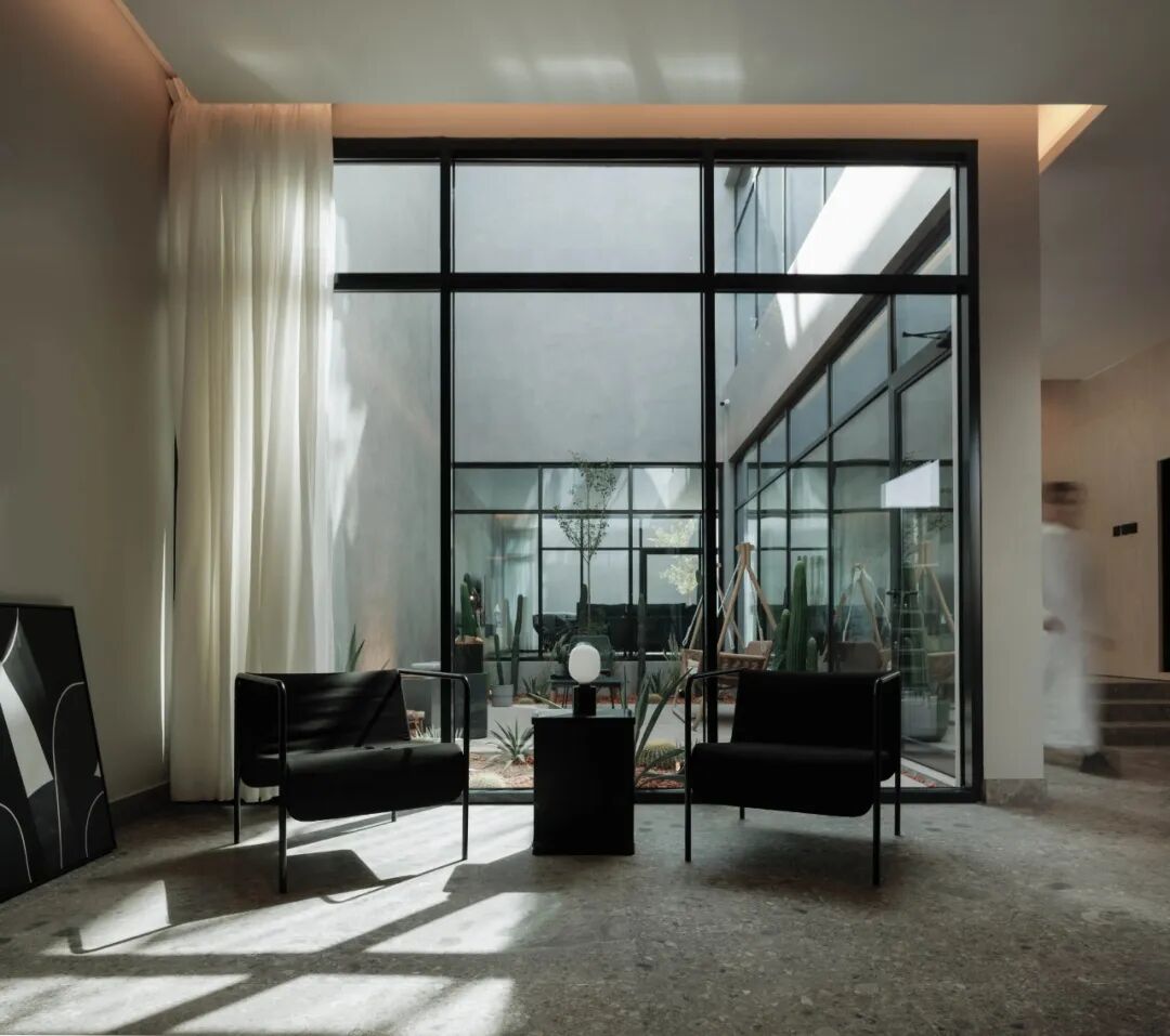 Inspired by Saudi Arabian Vernacular architecture and Modernism, Diqqa’s design intention is to deliver a modern perception of vernacular architecture with its outstanding use of local elements such as courtyard spaces and terraces and entwining them with inner spaces in such a way that all the spaces coexist within one another.