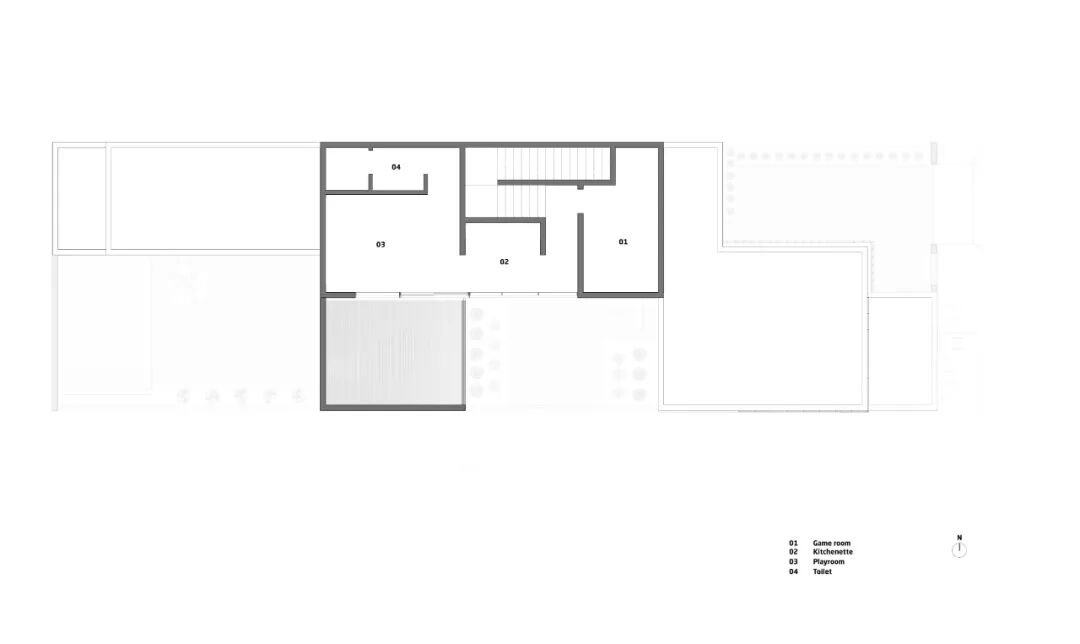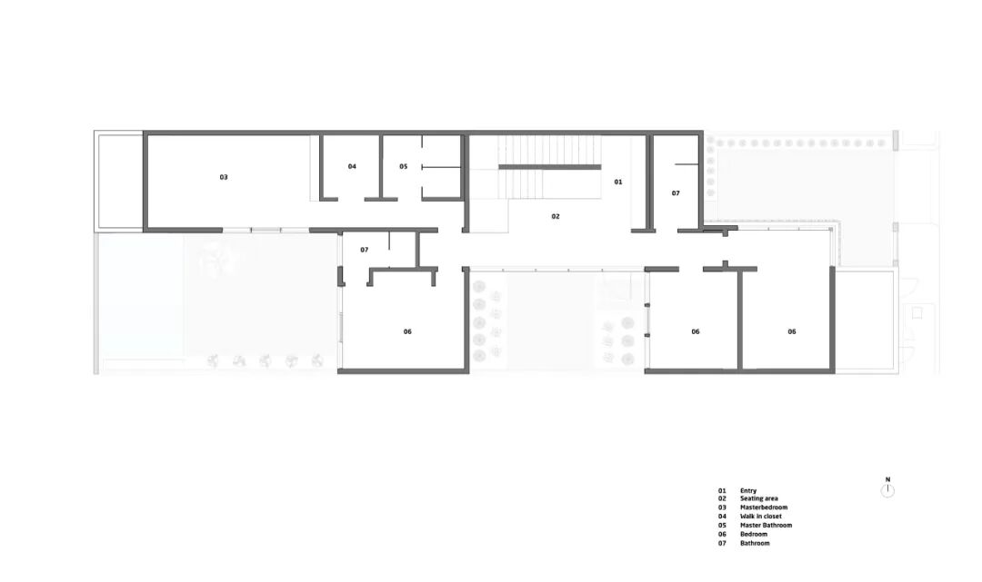 该住宅设有一个内部庭院,作为视觉焦点,并将自然光和通风引入相邻空间,在那里,欢迎客人的空间——大教堂一直朝向庭院。室外空间是室内功能性的视觉延伸,在室外和室内空间之间创造了无限的边界,用户可以尽情享受烧烤和游泳池等户外活动。