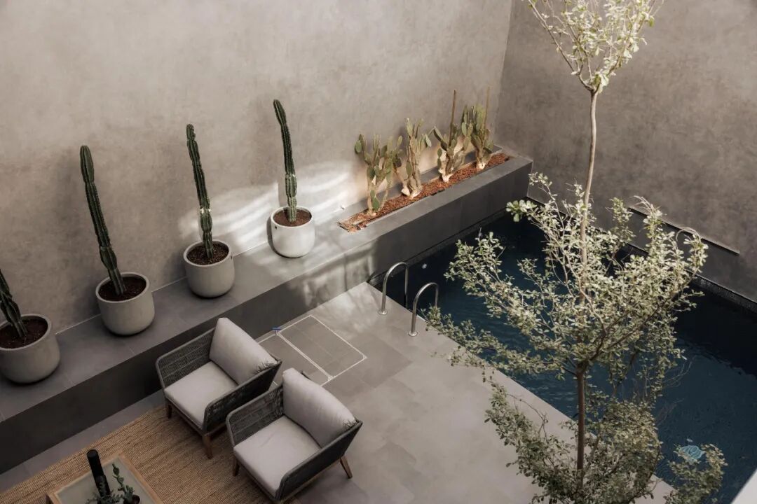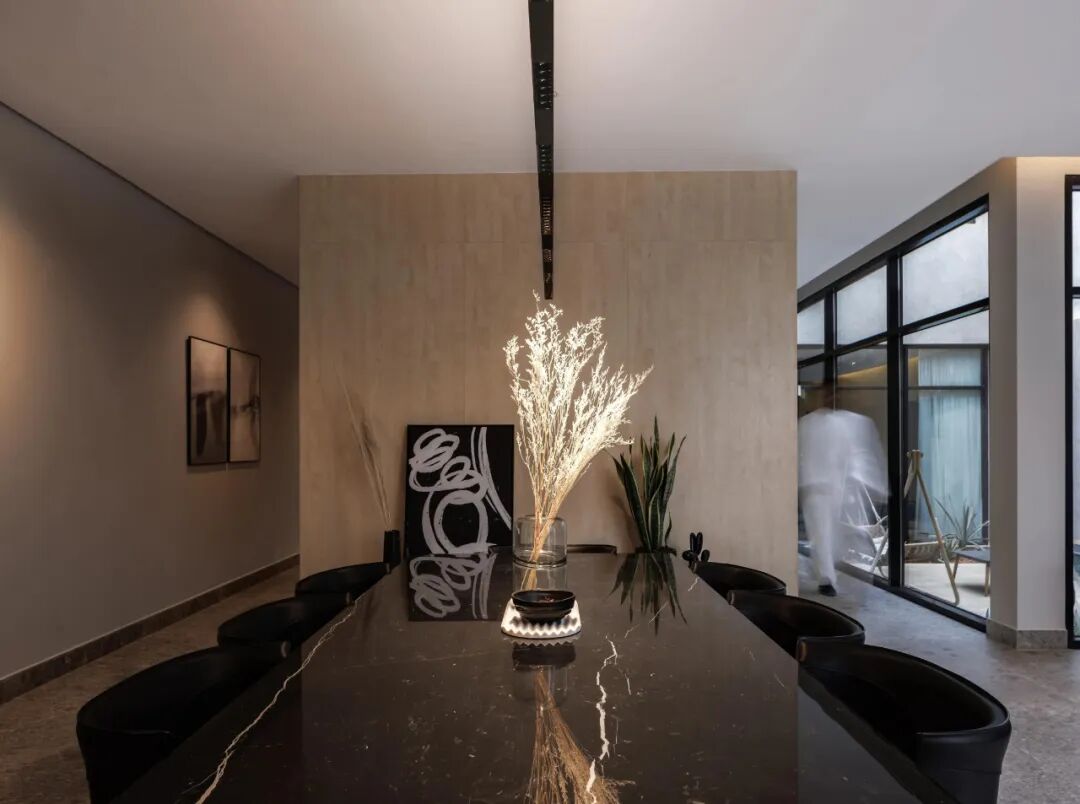 In order to create a space that accommodates the user's different senses of style, the interior of the spaces is designed in a way it acts as a template, with its simple and neutral details, therefore making whatever it embodies, become the center of attraction and attention. In addition, the distribution of spaces is linked in such a way it sparks a sense of curiosity in the visitor, making them eager to find out what next the villa has to offer, surprising the user space after space.