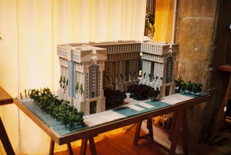 这些最初的作品,以及那些受他与不断变化的时代的和谐所激发的作品,在70年代紧随其后的是他对新古典主义或后现代主义灵感的建构,他在法国大肆挥霍的那些大规模的设计构想,提出了对城市改善的建议。