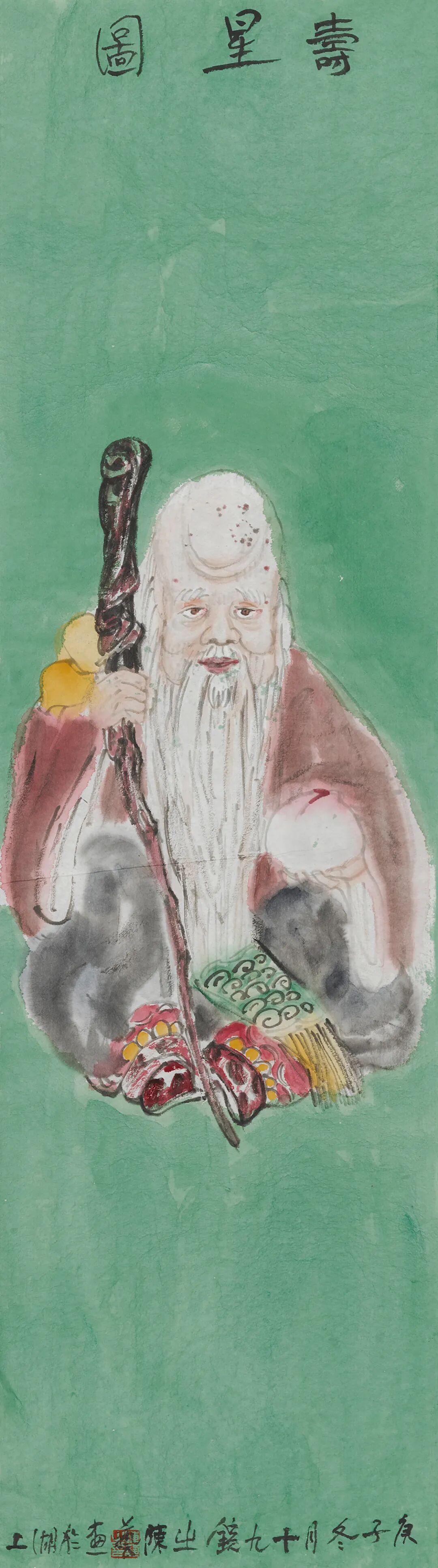 寿星图 ║ 77cm×21cm ║ 纸本设色 ║ 2020