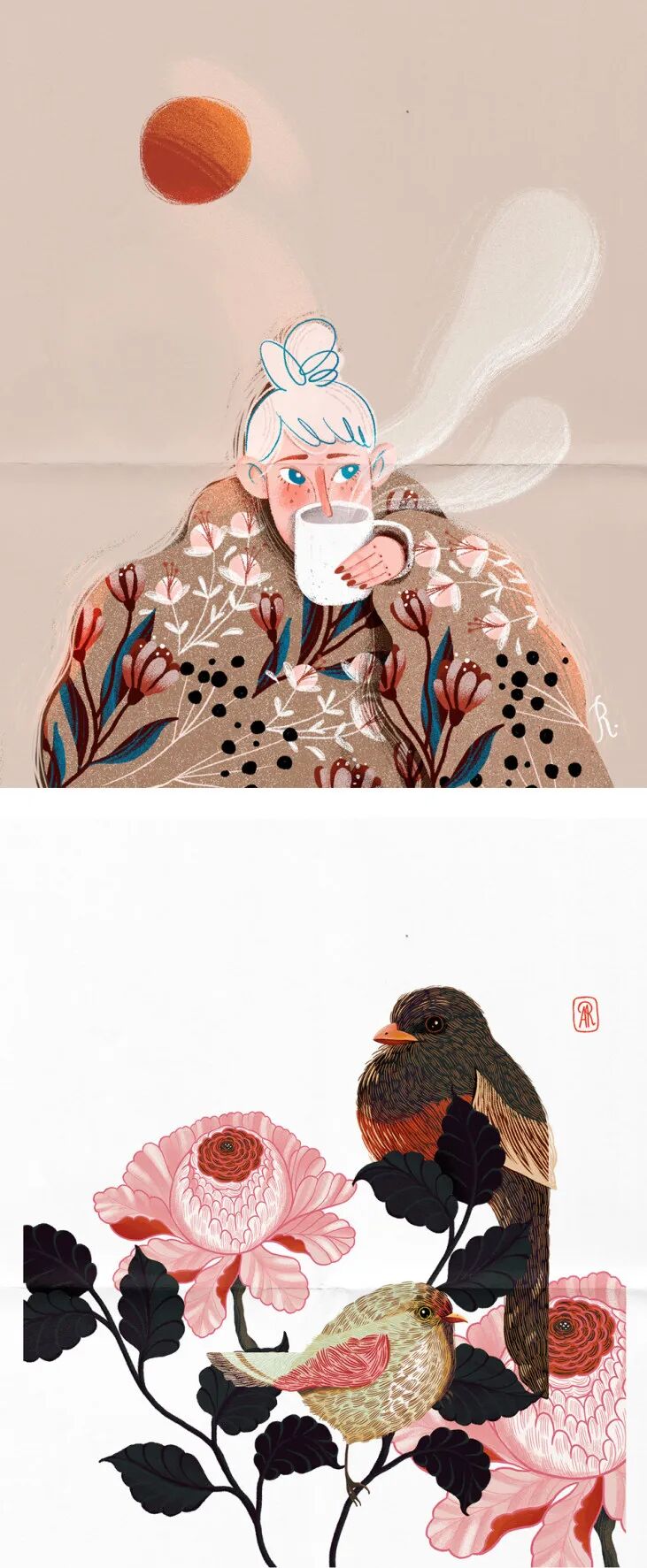 Anna Rudak努力使自己的作品有装饰性并能取悦读者,创作时投入积极的情感。运用的色彩很大胆,重色中衬托着淡雅的轻色,不俗气,不反感,反而更加有韵味。