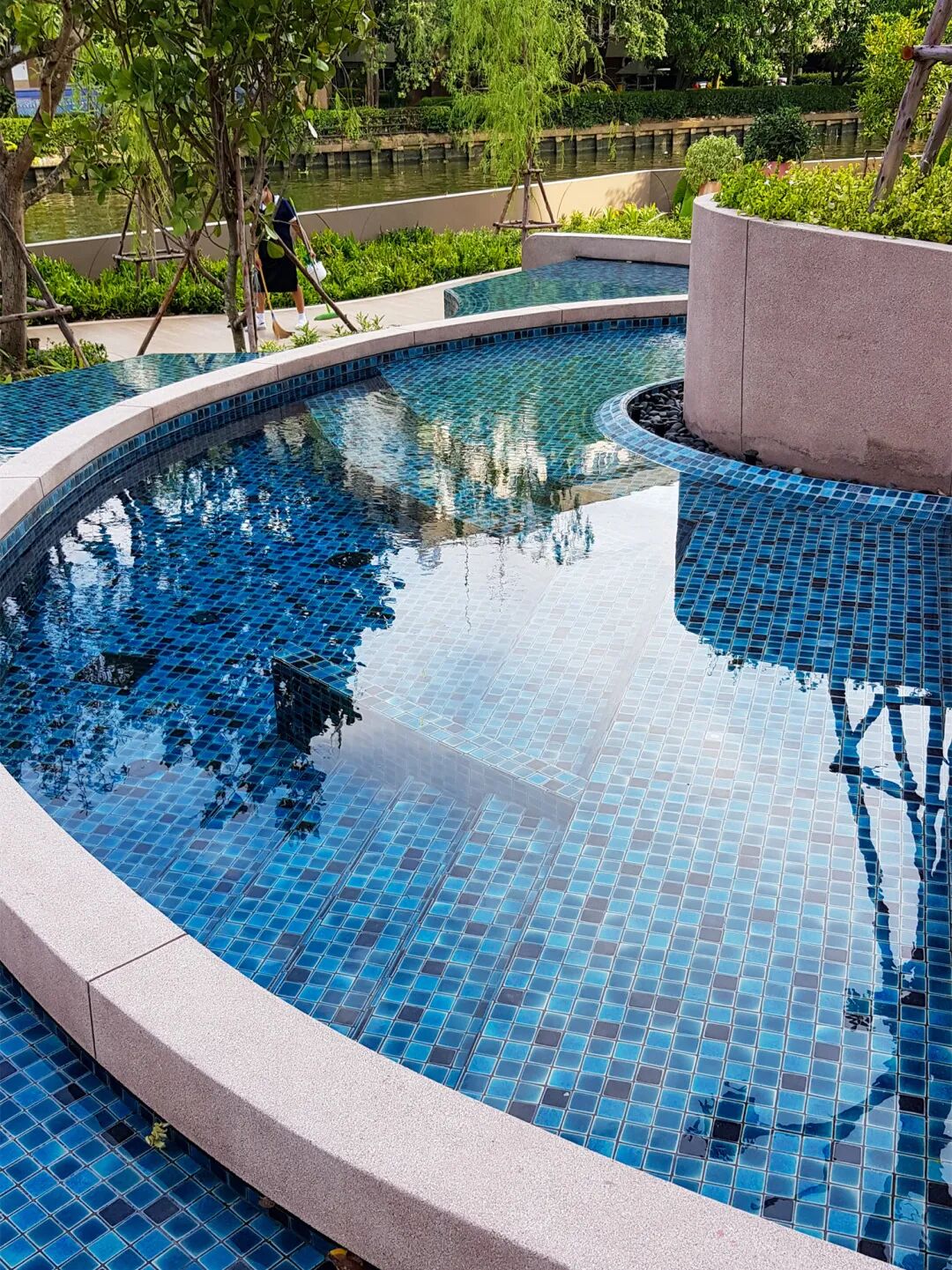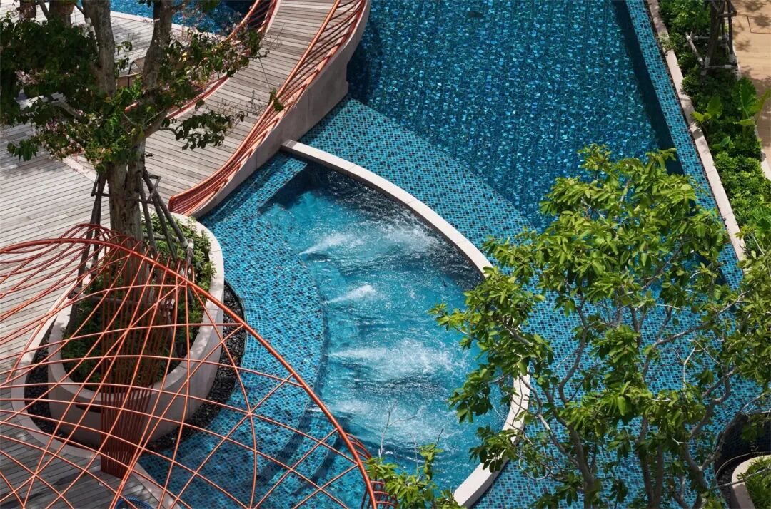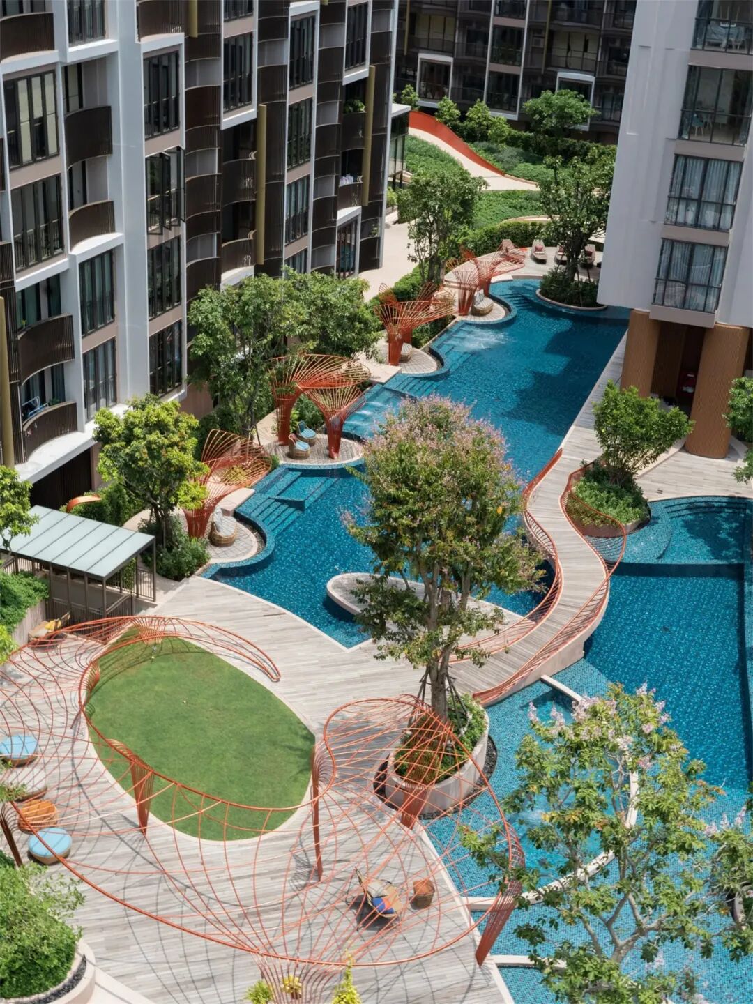 整个泳池的造型最大限度地利用了项目的空间,与一侧的运河形成呼应。