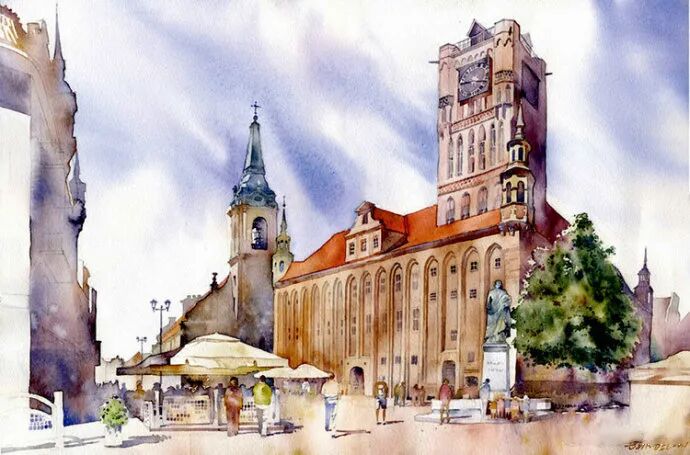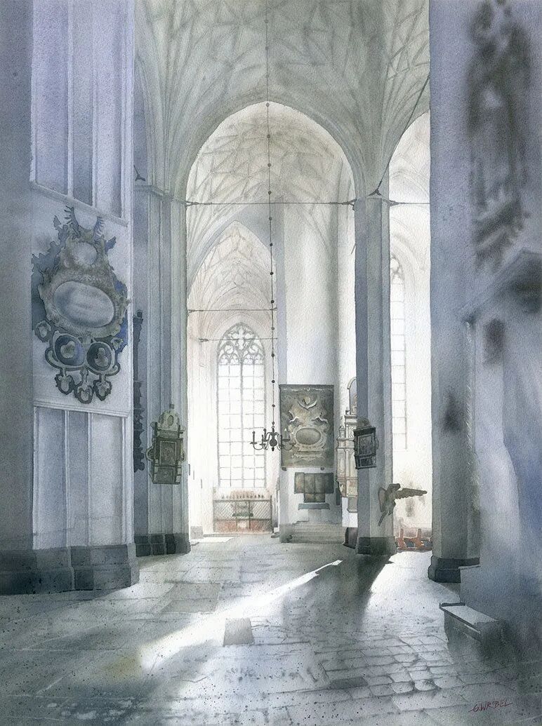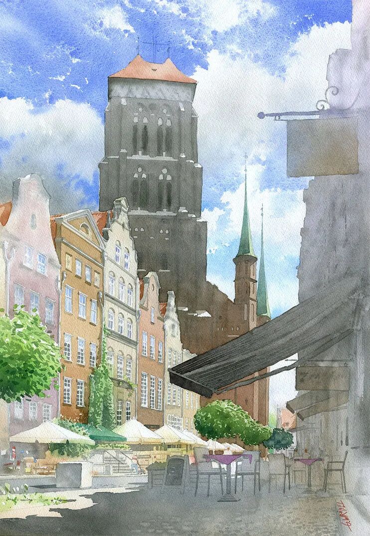 Grzegorz Wróbel,波兰建筑设计师,他的水彩画很有感染力,尤其是对光影的把握,更是精准到位,让人惊叹,颜色的搭配很协调,明暗的处理也很得当。