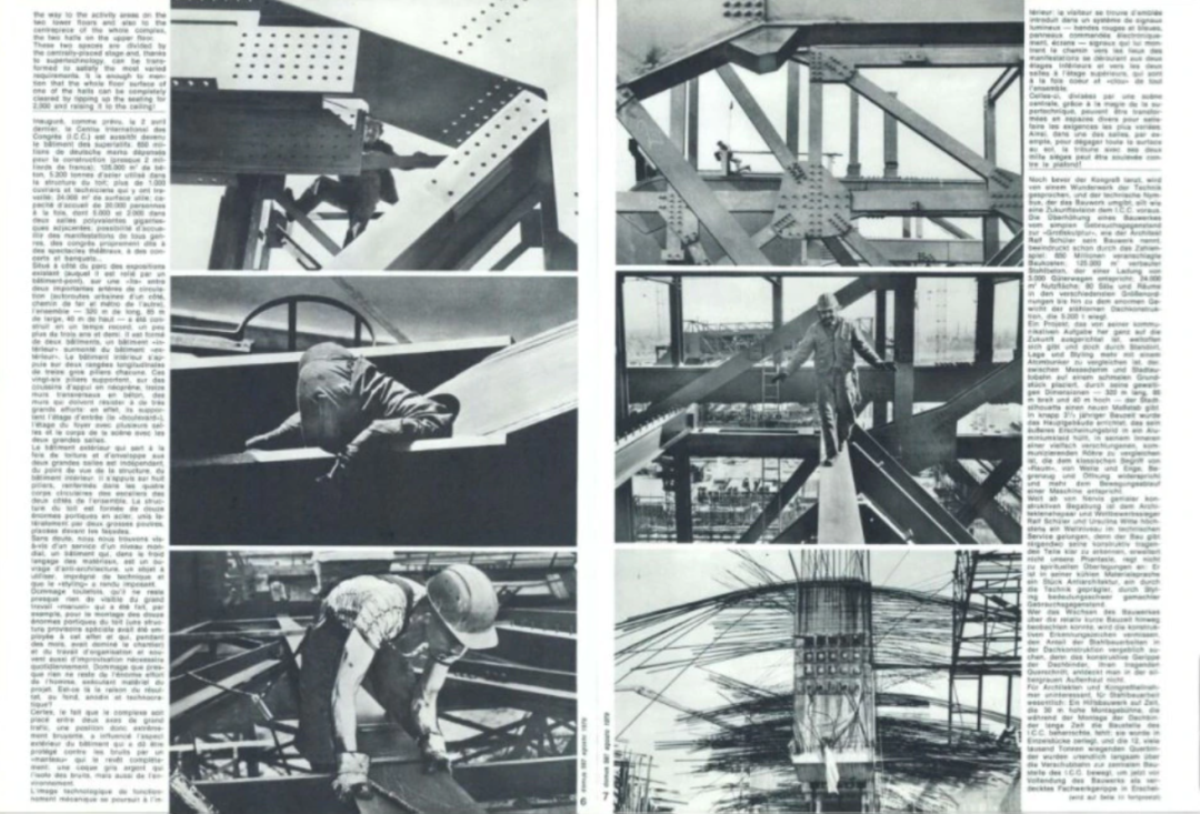 1979年,格哈德·乌尔曼 (Gerhard Ullmann) 发表了一篇文章纪念国际会议中心的开幕,他将ICC描述为“最高级的建筑”,列出了一长串由德意志联邦共和国推动的庞大项目的数字:“花费了8.5亿马克、125,000立方米钢筋混凝土、5200吨屋顶结构用钢、1000多名工人和技术人员、24,000平方米的表面积/可同时容纳 20,000 人的空间、其中两个巨大的多功能厅分别可容纳5,000人和2,000人”。