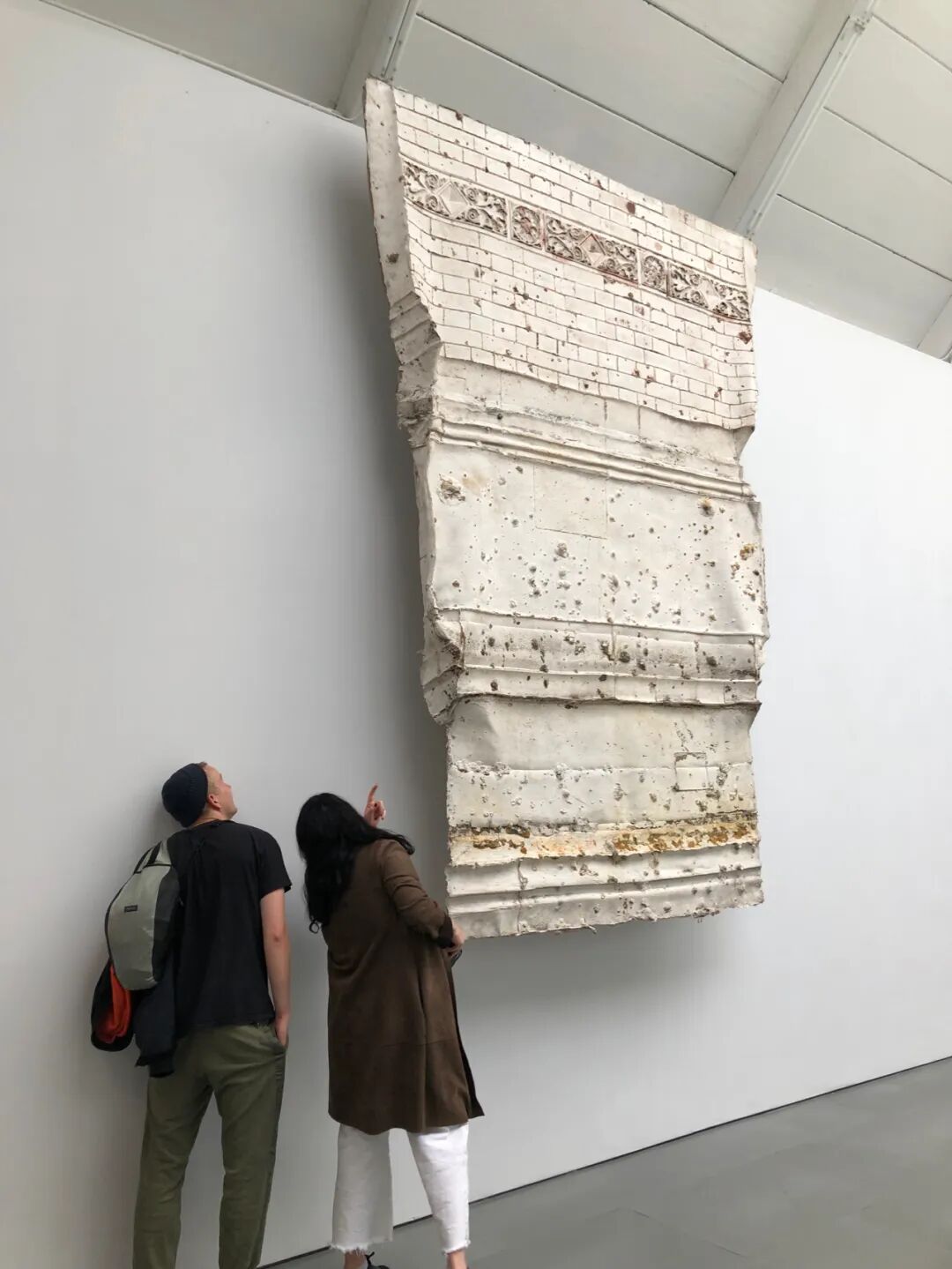 On the other side, beyond the beam, Asta Gröting’s façades and Nida Sinnokrot’s Rubber-coated Rocks are anchored in different historical experiences, testifying to a temporal distortion between memory and moment. Rosha Yaghmai’s elegant, fragile sculpture Optometer, Hairpin (2021) composed of an assemblage of building materials and corrective lenses, oscillate between sedimentation and transparency and, through the prisms of the lenses, direct our gaze from the hidden to the visible.