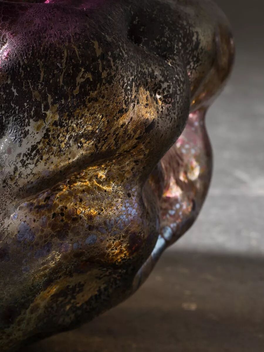 这次 Eliška 将玻璃直接吹入由岩石制成的模具中以混合两种材料,然后在顶部添加彩色玻璃。