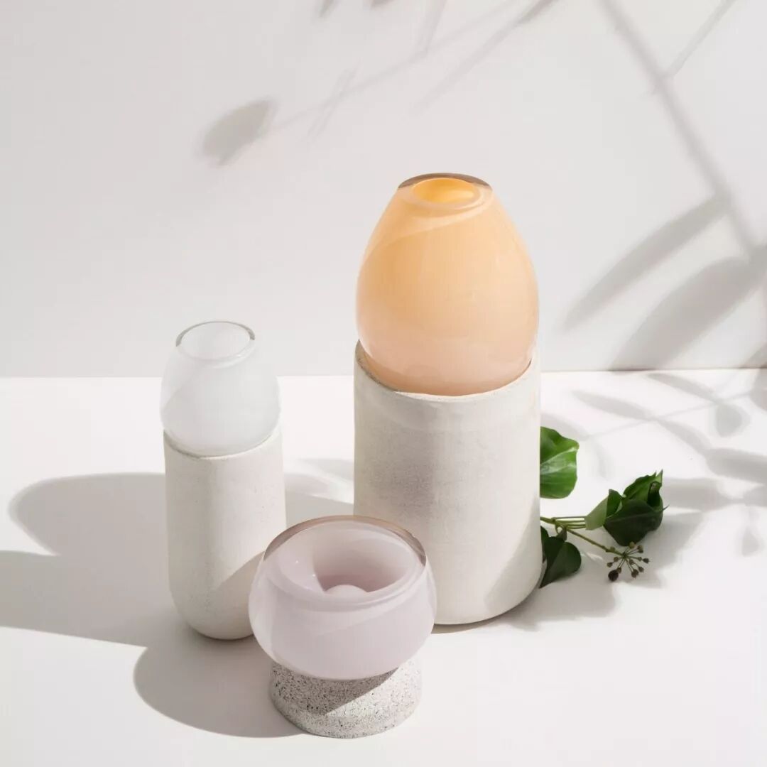 这两种材料在质地,形状,颜色和光洁度方面完全不同,该项目利用陶瓷材料和玻璃吹制技术的广泛实践研究成果,展示了将两种材料连接在一起的各种方法,同时探索了这种组合在纹理,形状,颜色和饰面方面的美学和功能潜力。