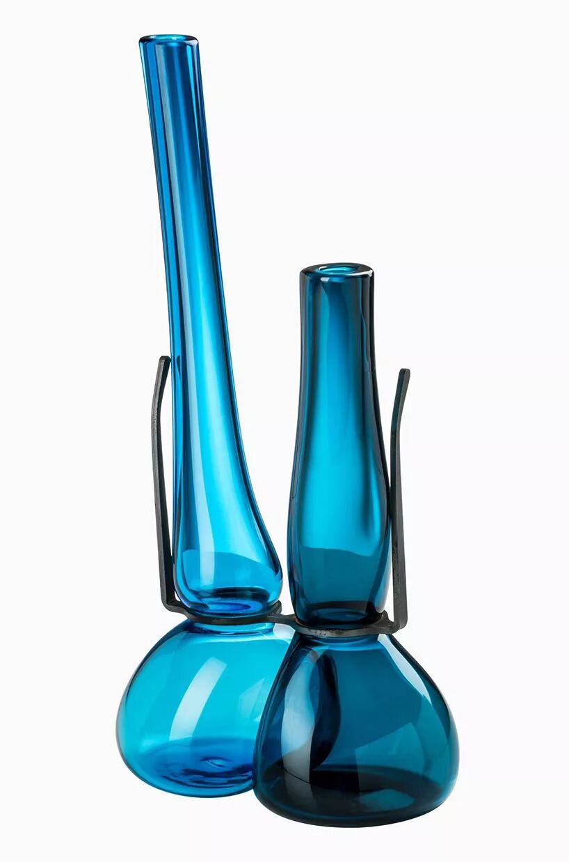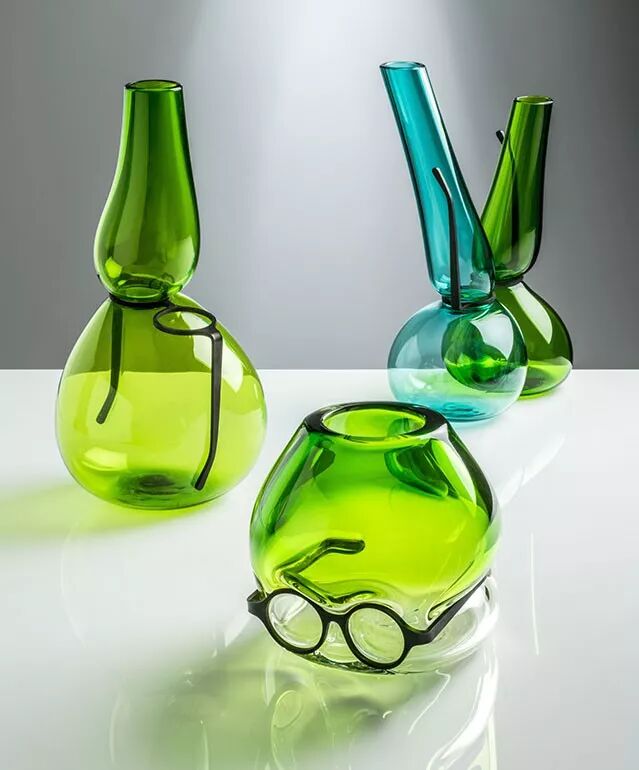 伦敦设计师 Ron Arad 善于制作装饰性玻璃器皿,这组作品融合了玻璃和金属,运用非凡的艺术形式酝酿了这样一个独特的造型。