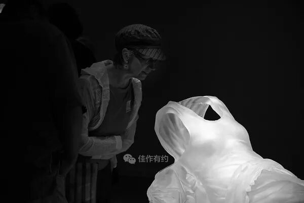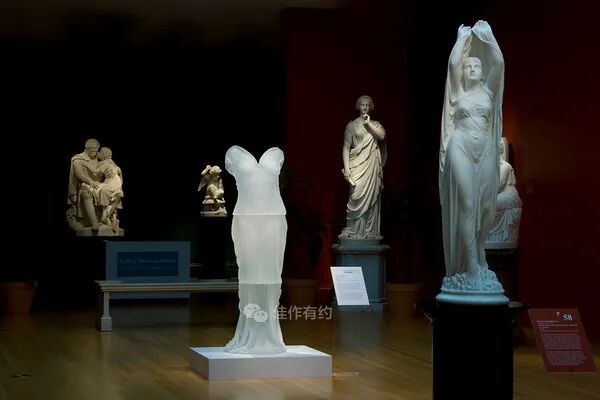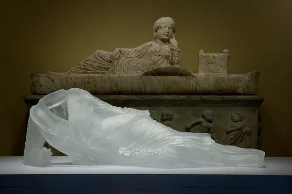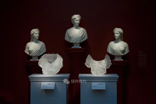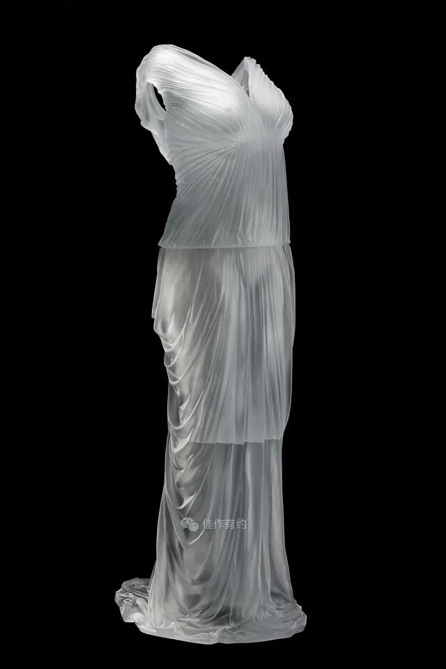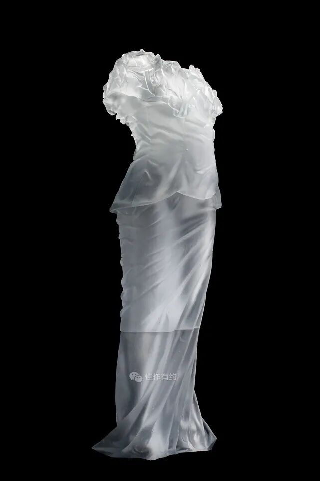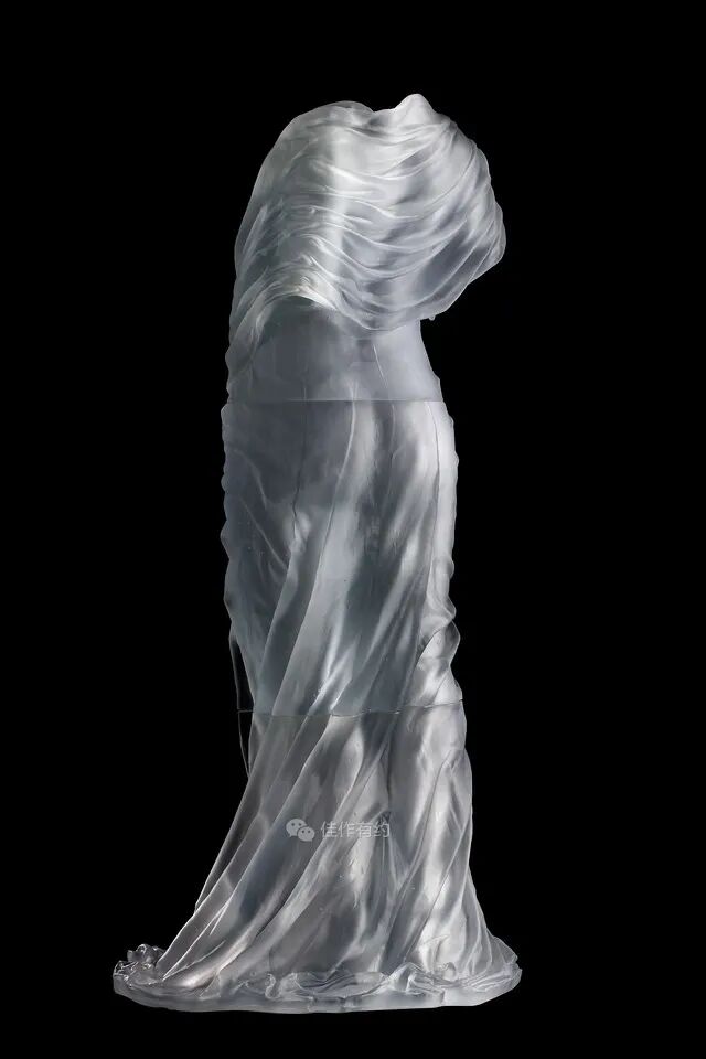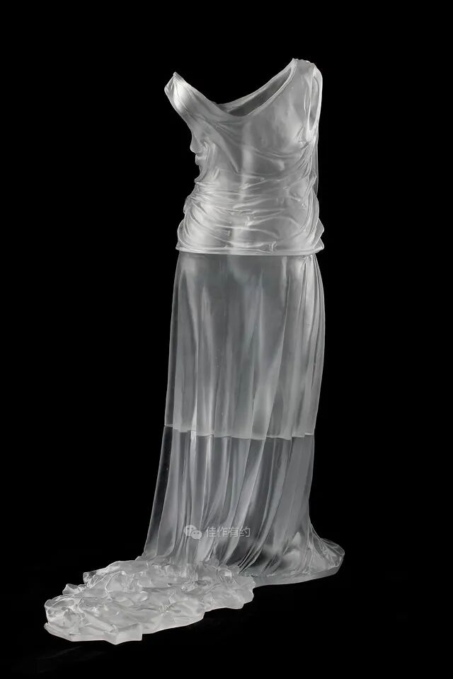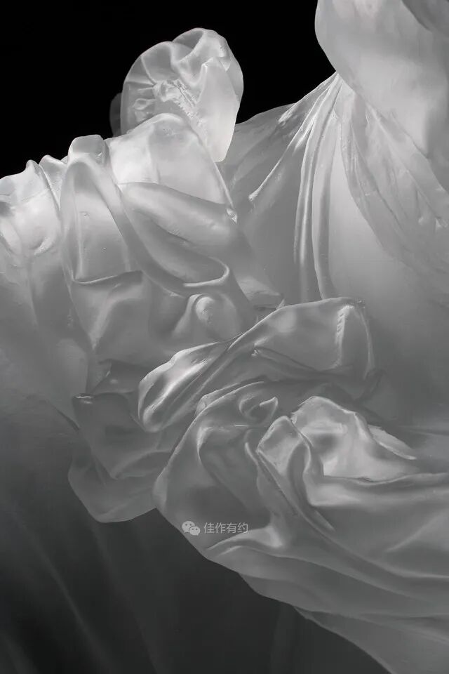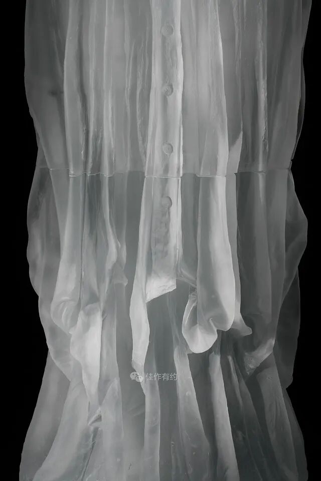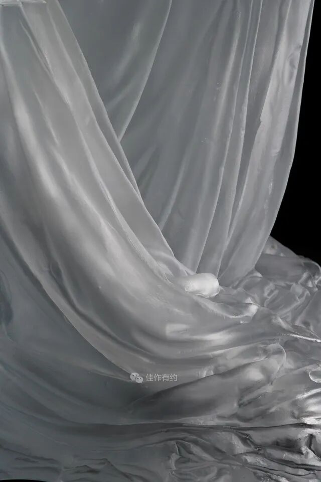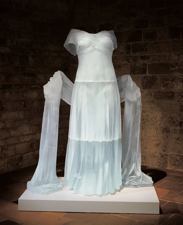 KAREN LAMONTE 用披着透明玻璃裙的不在场的裸体来研究人文主义与情色、物质与空灵、身体与精神之间的紧张关系。这些雕塑既有强烈的物理性——肌肉和肉体紧贴着紧贴的织物——但又没有实体:人物不存在,只有压在衣服上的形状暗示了这一点。