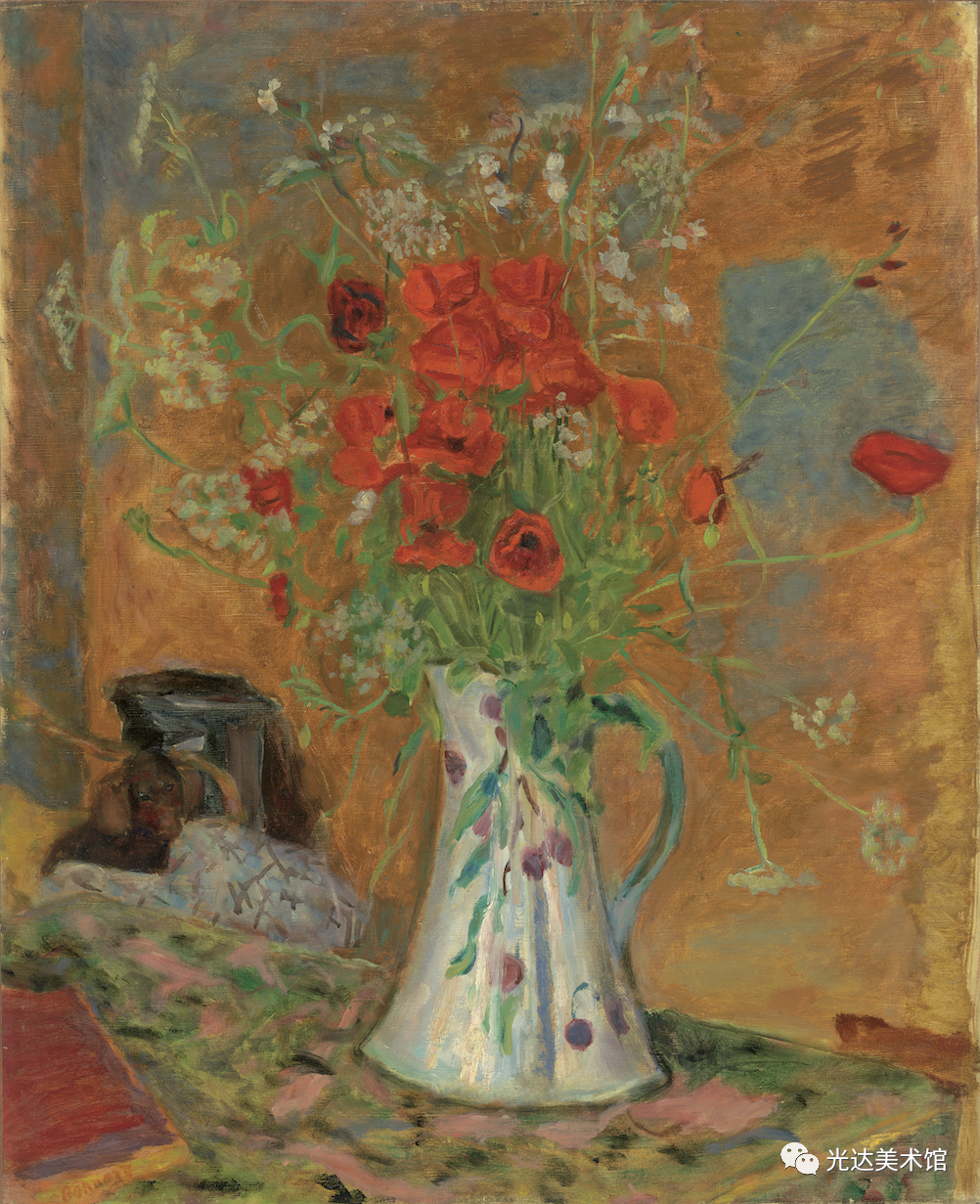 五十年前,事情要简单点。博纳尔的外甥,夏尔·泰拉斯,在给现代艺术博物馆一九四八年博纳尔个展的画展目录作的序里写道:他的舅舅“只想画点快乐的事物”。这话里有可曲解的余地(他想画,但是没做到),不过这大概并不是作者的本意。不管怎么说,这话可无法让今天的人们满意。快乐?伟大的画家肯定不只想画快乐的事物吧?快乐的故事纯洁无瑕,画快乐事物用的色彩,有人说只不过是“杰出配色师”调出来的。不足以让人满意啊。在这个节骨眼儿上,画家的生平事迹令人可疑地前来相救,给我们送来了勒妮·蒙沙蒂其人。如果说有哪个画家特别需要一个人牺牲自己来帮助他提升名望,这个画家就是博纳尔,而这个故事来得正是时候。现在,一生迷恋玛尔特这个模特、情人、妻子的博纳尔,被换成了另一个博纳尔:和玛尔特在一起三十年后,他爱上了勒妮,一个胸怀大志、比他年轻许多的画家,一九二一年向她求了婚,后来又退缩了(或者被玛尔特镇压了),然后发现勒妮死在了巴黎一家酒店的客房里。勒妮自杀身亡一年后,博纳尔与玛尔特成了婚。