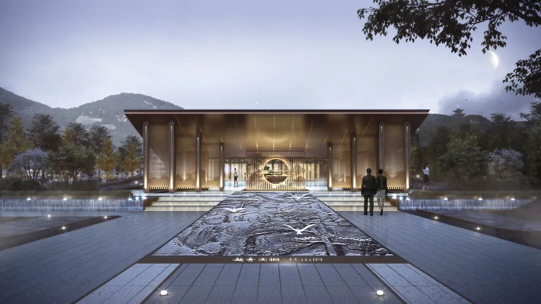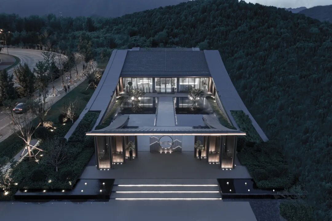 越秀天恒怀山府——怀山生活美学馆,位于中国北京怀柔红螺别墅片区,以"怀山序曲"为设计理念,现代为形,中式为意,提炼本土文脉特点,延续了北方府宅语言。将燕山山脉、雁栖湖月、红螺古寺等本地风光意向融入于设计当中,院与园结合,打造层层叠叠、连绵不绝,具有怀柔文旅特色的美学生活馆。