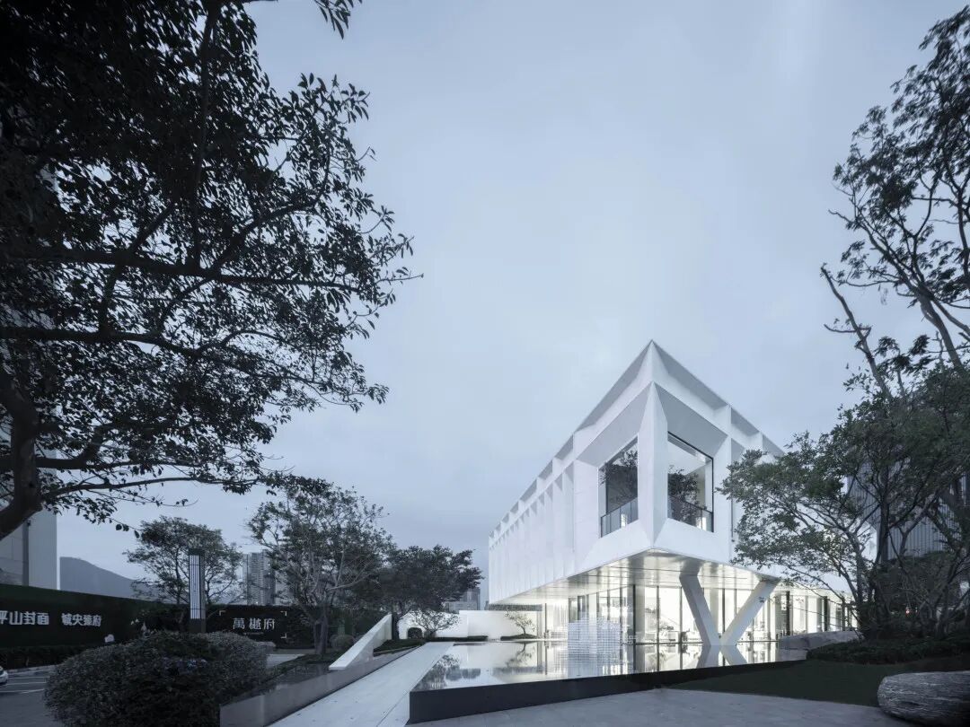 建筑立面的斜切四面体处理,是大万世居的屋顶形态转译,在过去天井是窥视客家生活的窗口,今天是新客家建筑生活的景框。