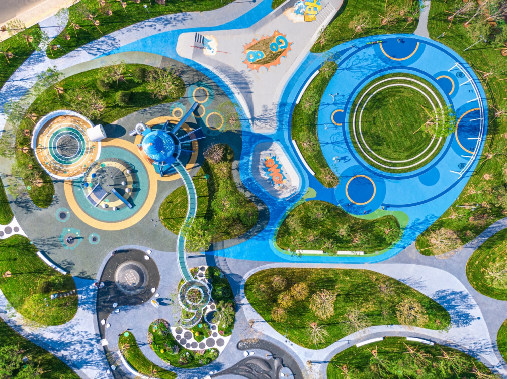 景观布局将“旭辉 5+X场景”落位体系科学合理地分布于九大住宅地块+城市公园中,整体区域相互连接,相辅相成,形成多元且系统的公园居住社区。提取皇城文脉,生成空间布局系统,形成场地的肌理设计。中部街区设置的祥云公园,形成密云城市与潮河自然景观带的链接纽带,由全龄潮玩乐园,依次由北向南过渡到城市艺术舞台,缤纷花海营地,成为周边居民日常与假日的休闲场地。