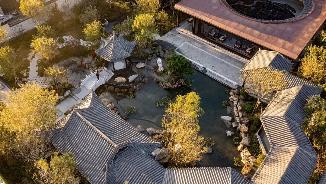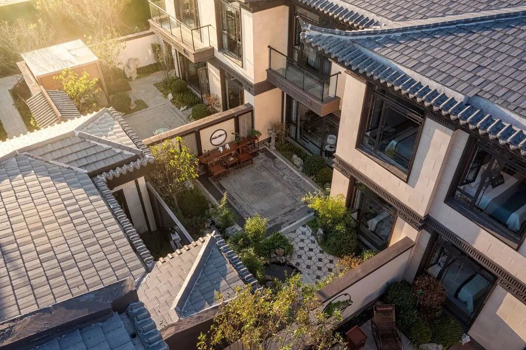 项目外立面采用了中式风格,返璞归真,尽显东方诗意美学精粹。我们借鉴了宋代名家画卷,将意境置于景中。铺落园、街、巷、院,以古法匠艺、定制型材呈现中式院落礼序,并结合现代人审美及人居标准,以高墙、阔院儿、二层规则,将“师法自然”的中国传统人居理念与“藏风纳气”建筑形制,精妙匹配,打造现代中式合院别墅。