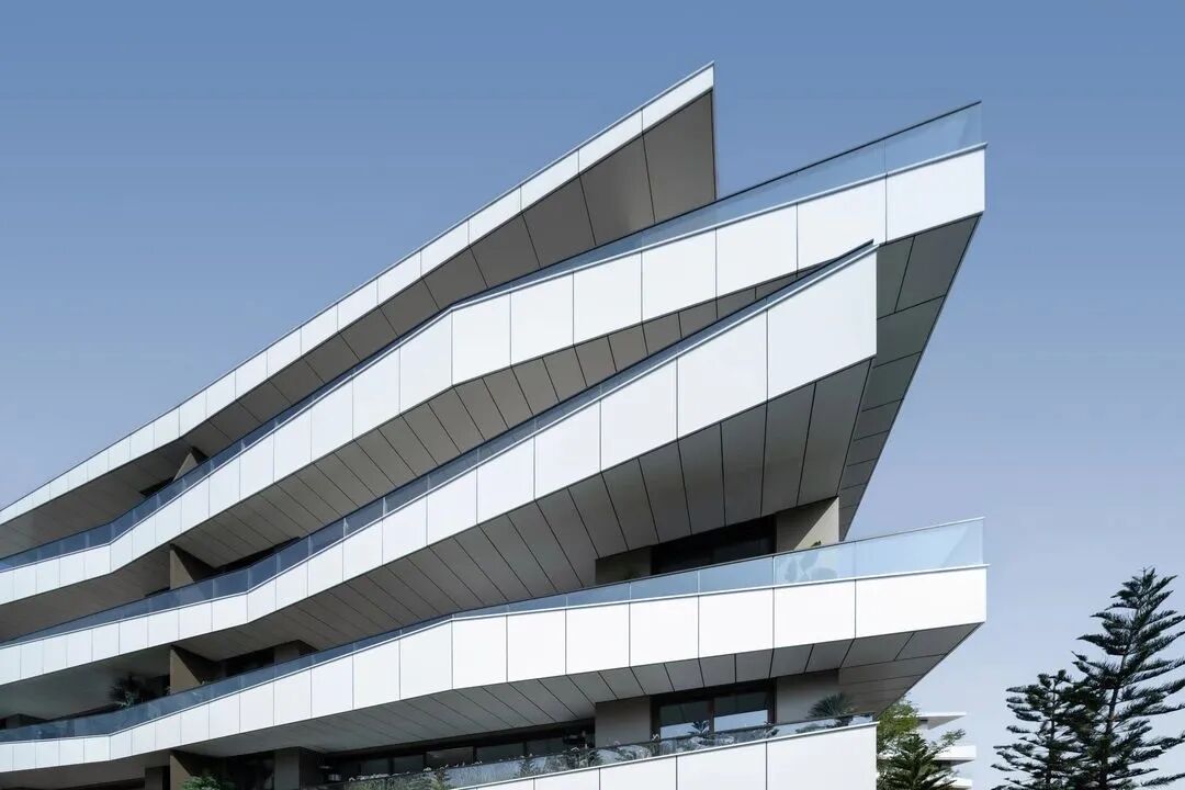 引人注目的雕塑facade和阳台处理,使建筑具有惊人的美学特征。SAOTA设计了一个带有跷跷板或“拉链”效果的多面几何图形,通过光线和阴影在角度facade上的移动相互作用来创造深度。当太阳照射到facade时,光影的模式使露台生动起来。阳台在某些点上“踢出”,这增加了视觉的效果,而“扭结”的结构也在某些情况下打开了双重视野。