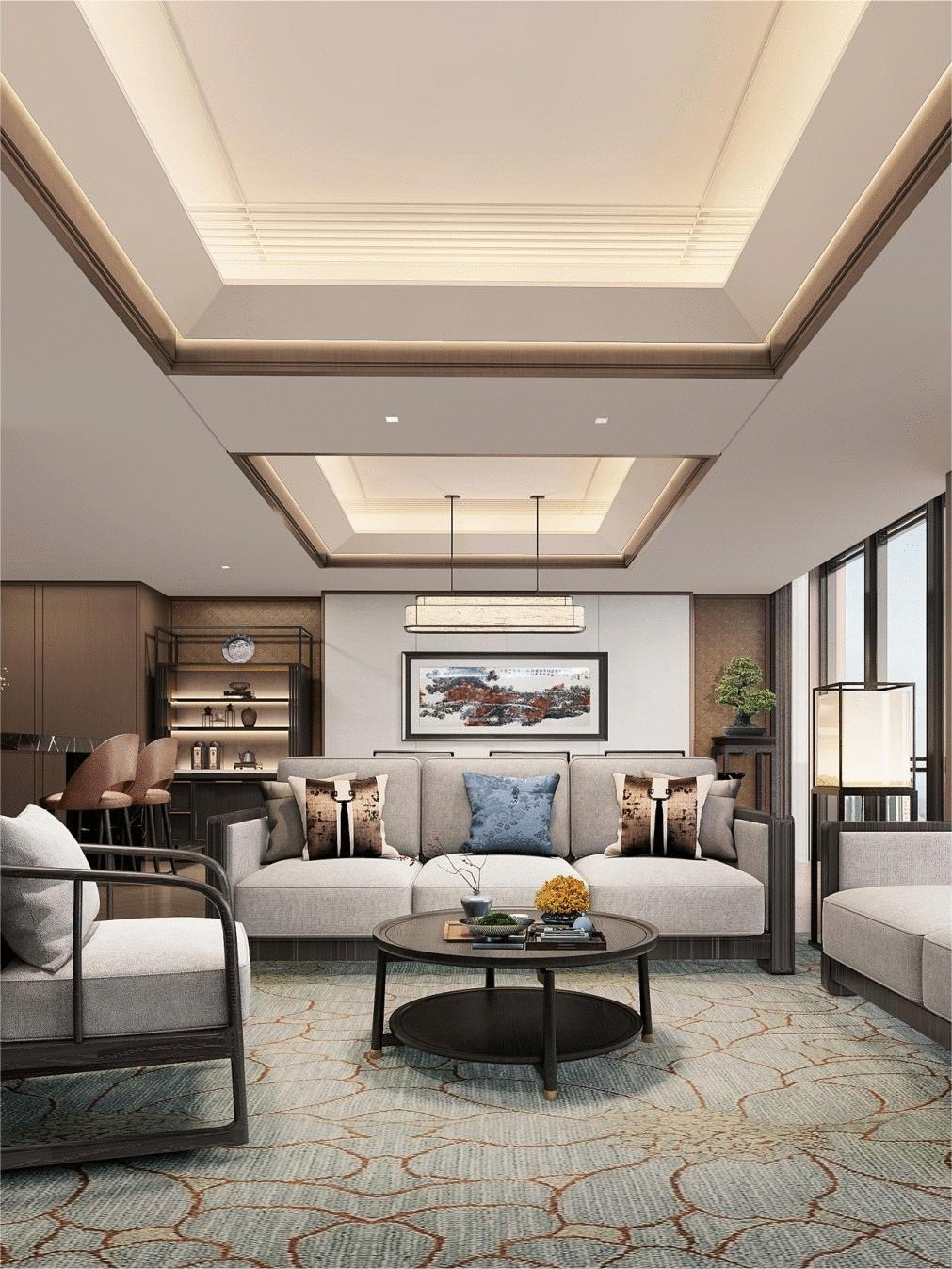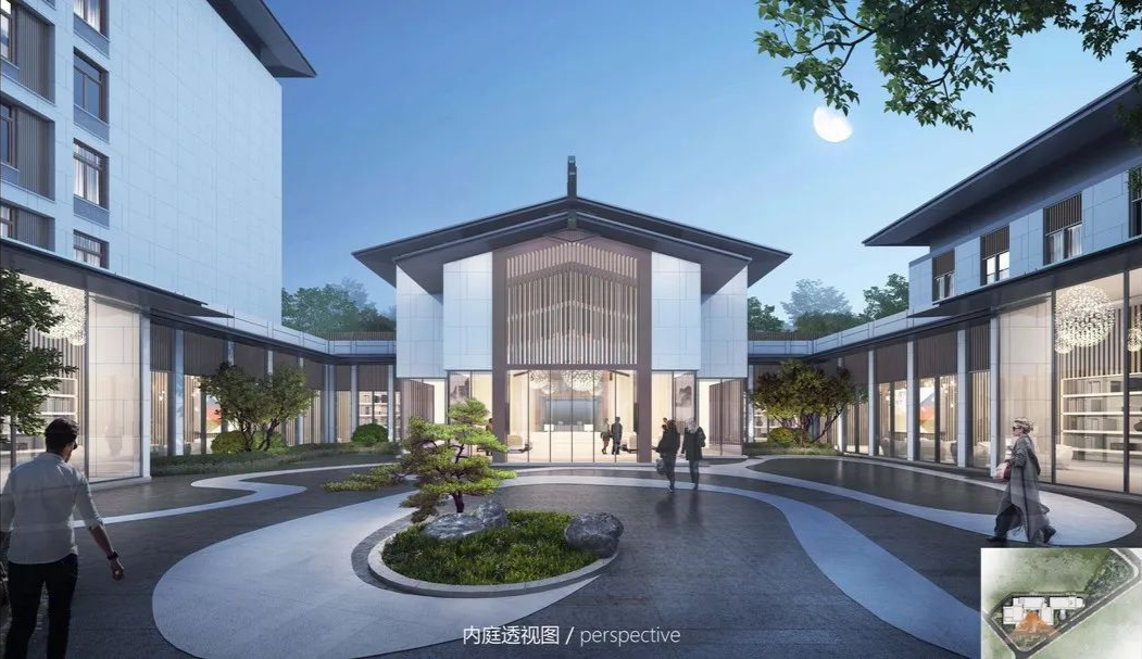本项目通过中式合院布局,拆分建筑体量,顺应场地地形,增加建筑体块的咬合关系,引入连廊系统,联系内部各个体块,形成丰富的院落空间。