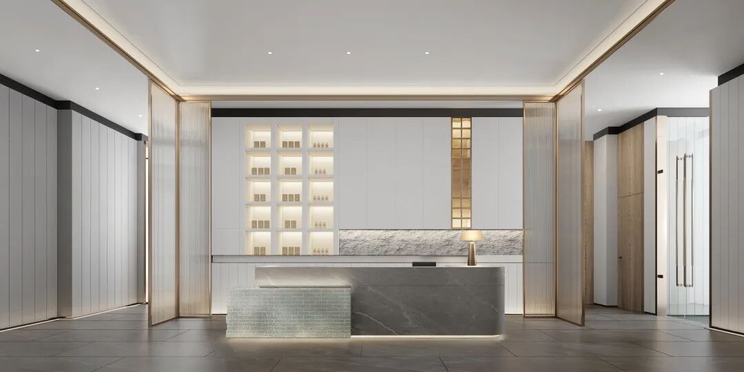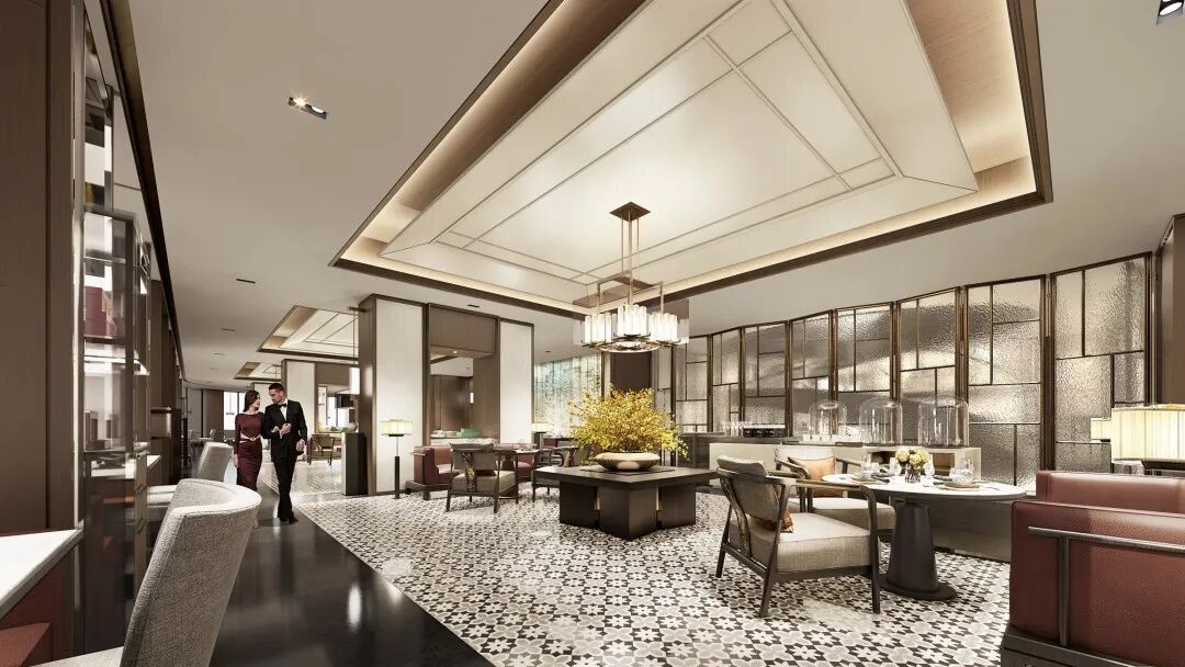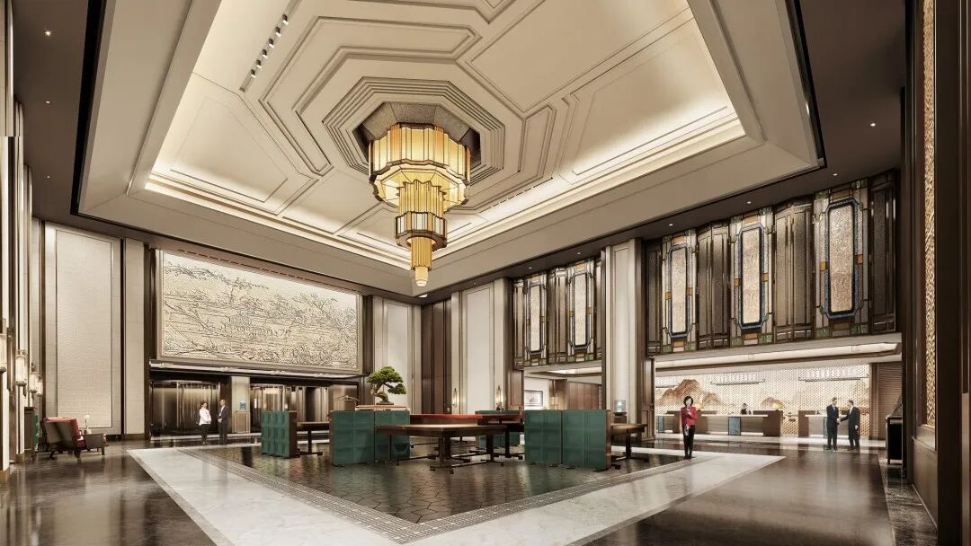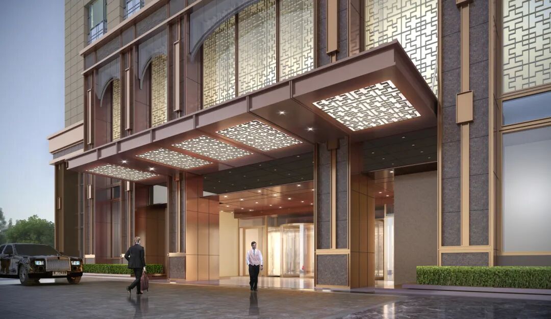 项目外立面进行细部设计提升精致度体现酒店高级感,而内装设计延用了岭南文化充分表达地域风格,提取广州岭南窗花、琉璃、藻井、龙纹石雕等经典元素以中式岭南风格为底蕴,结合现代设计手法,呈现出以“粤韵流芳”为设计理念的空间。