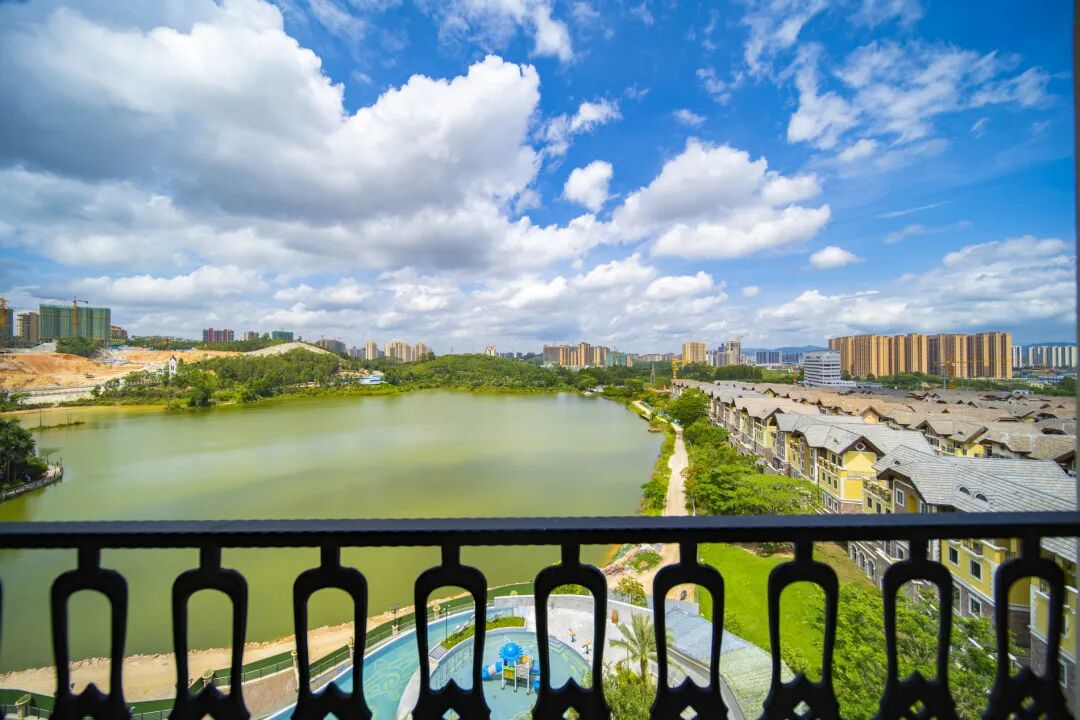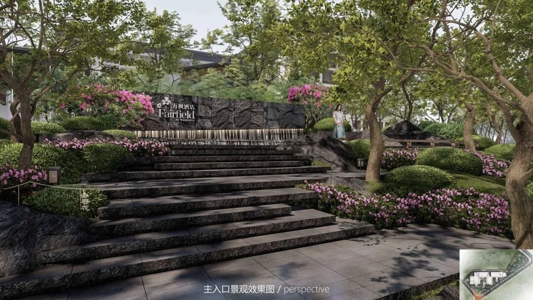 项目大门正对东北侧的双车道和停车场形成的外部交通、极大的便利了来自小镇方向的主要人流出行,背面的西南侧面向湖泊,室外泳池和人行步道打造的沿湖风光带构成了内部流线,由外至内提升居住体验。内部景观充分利用地势高差打造跌水、景观楼梯、沿湖步道、室外泳池等景观小品,营造度假风情,丰富居民休闲生活。