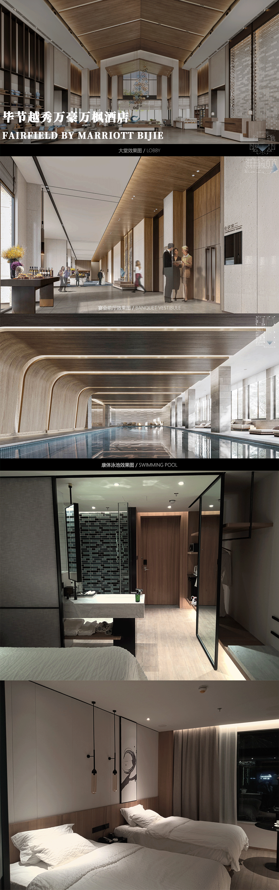 毕节越秀万豪万枫酒店规划面积约为28亩,营造了一个集风景游览、民俗体验、培训拓展、休闲度假为核心服务的特色度假酒店。项目用地面积为18915.16m,总建筑面积约24483.16m,地上部分总建筑面积16423.80m,地下建筑面积8059.36m 。