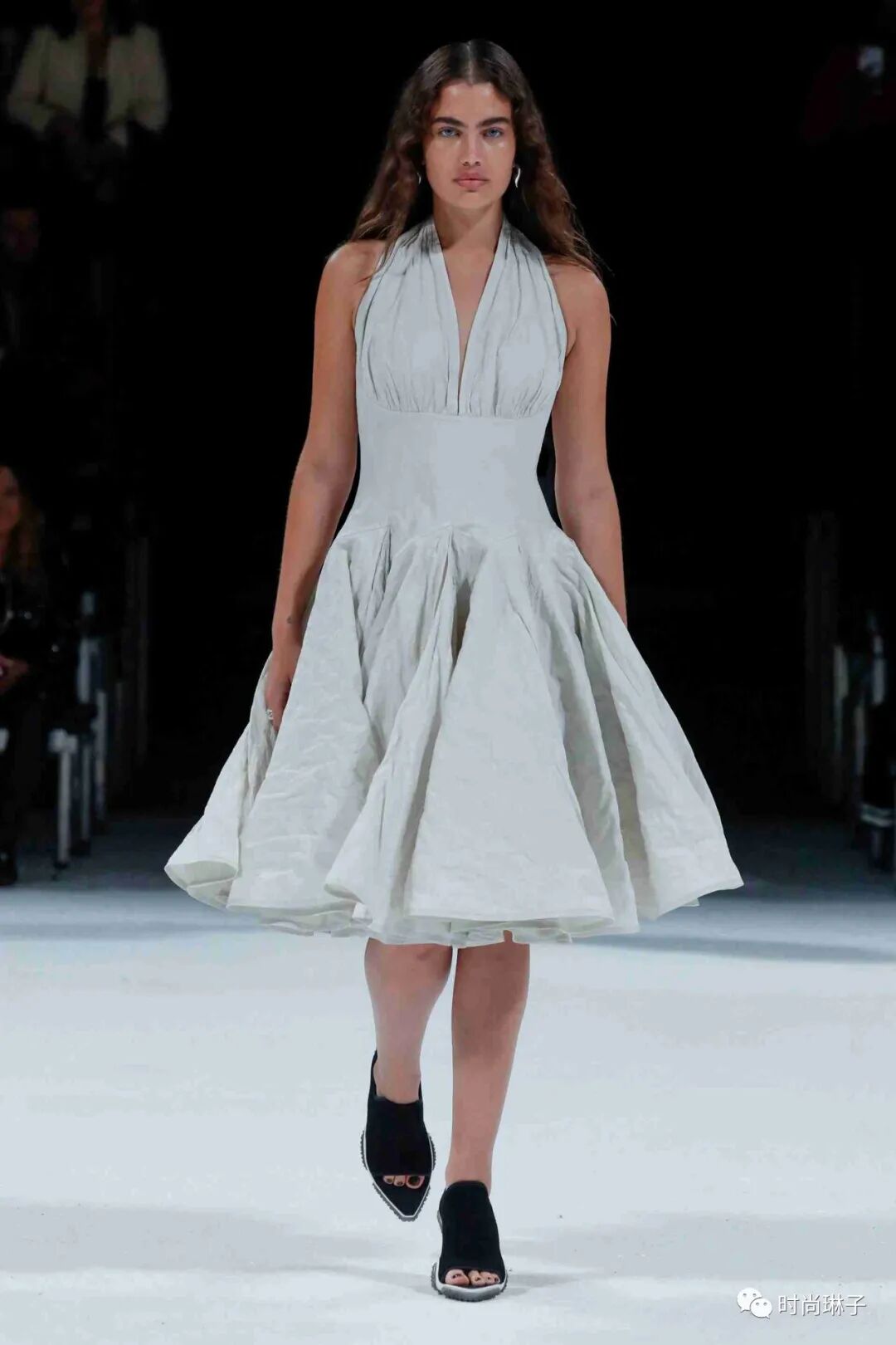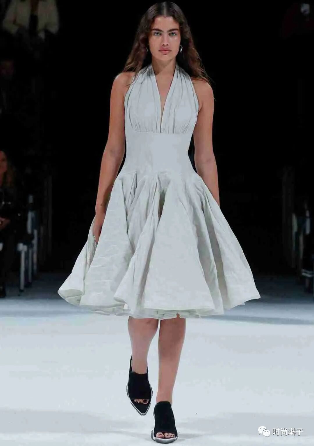 该季重新诠释了1950年代美国明星玛丽莲梦露的经典连衣裙造型,结合工业化的线条,性感且利落。