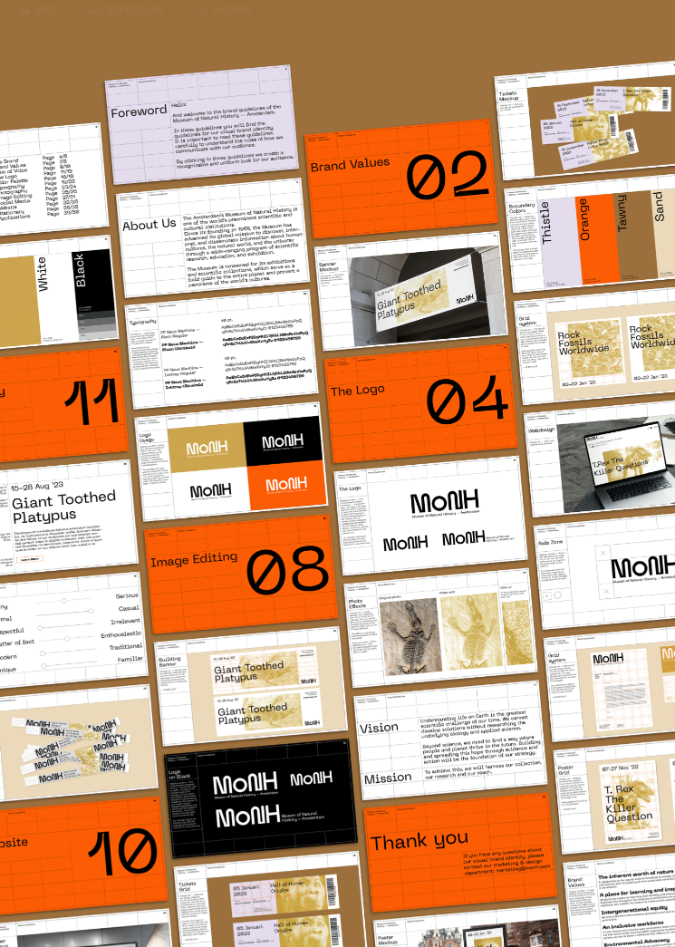 作品集2023-11-05 博物馆品牌形象 | 阿姆斯特丹自然历史博物馆视觉形象 阿姆斯特丹自然历史博物馆(MONH)是世界上最杰出的科学和文化机构之一。自成立以来,博物馆通过广泛的科学研究、教育和展览计划,推进了其发现、解释和传播有关人类文化、自然世界和宇宙信息的全球使命。该博物馆以其展览和科学收藏品而闻名,它们作为整个地球的实地指南,展示了世界文化的全景。 来源@typefool | 所有版权均属其版权持有方 本文来自微信公众号“品牌设计系”(ID:TheBrandDesign)。大作社经授权转载,该文观点仅代表作者本人,大作社平台仅提供信息存储空间服务。 TAGS: 品牌形象视觉 相关文章Kleoniki Andr…这是大王Day.281获奖作品《2020最佳图书…精选头像|搞怪来袭!安东尼奥·布埃诺 作品配色清新梦幻的场景插画,充…美国Jennifer Mc…【小鹏设计】设计小改/动力…【首发】地点空间丨打破空间…谢商家不坑之恩!只骗有钱人…