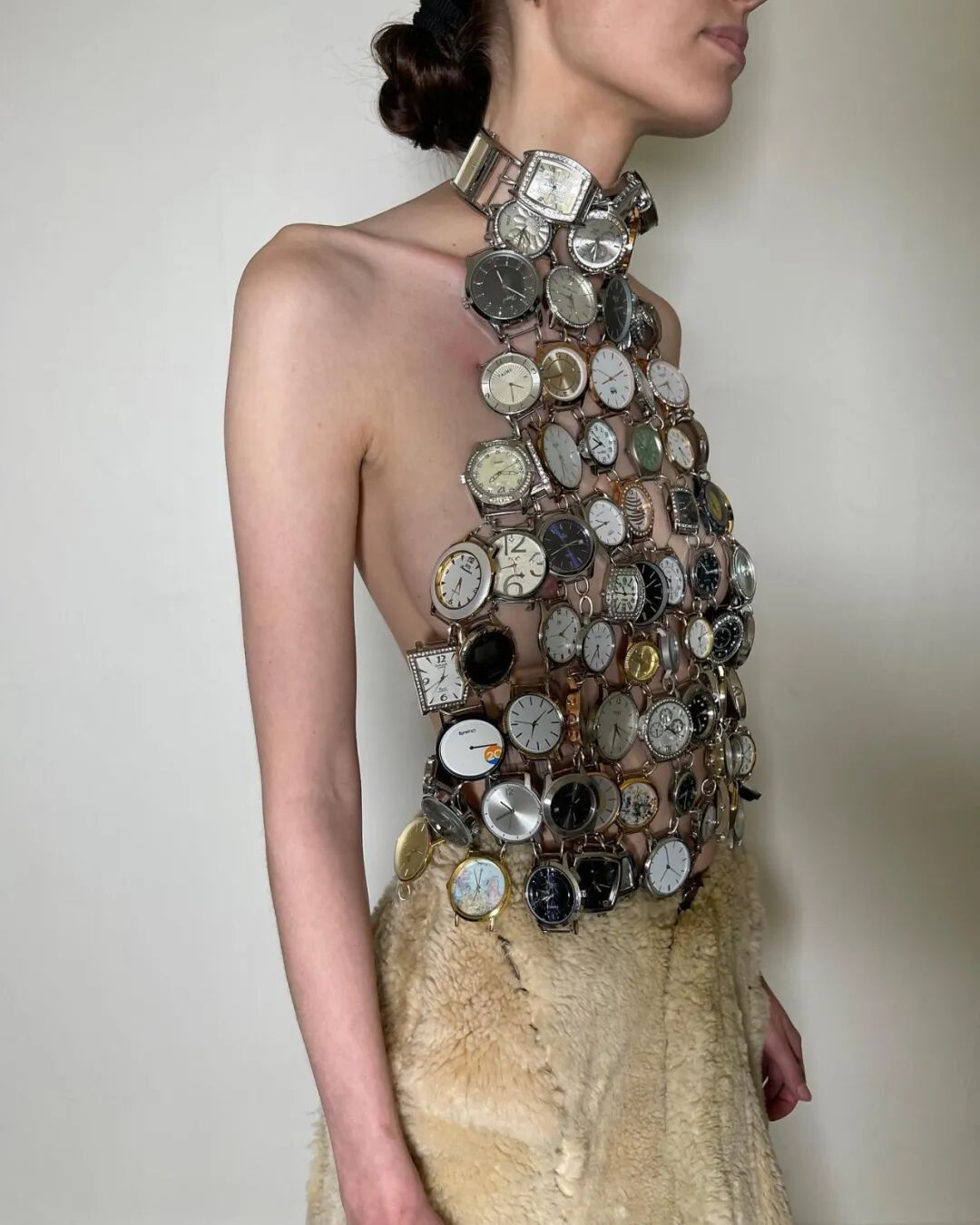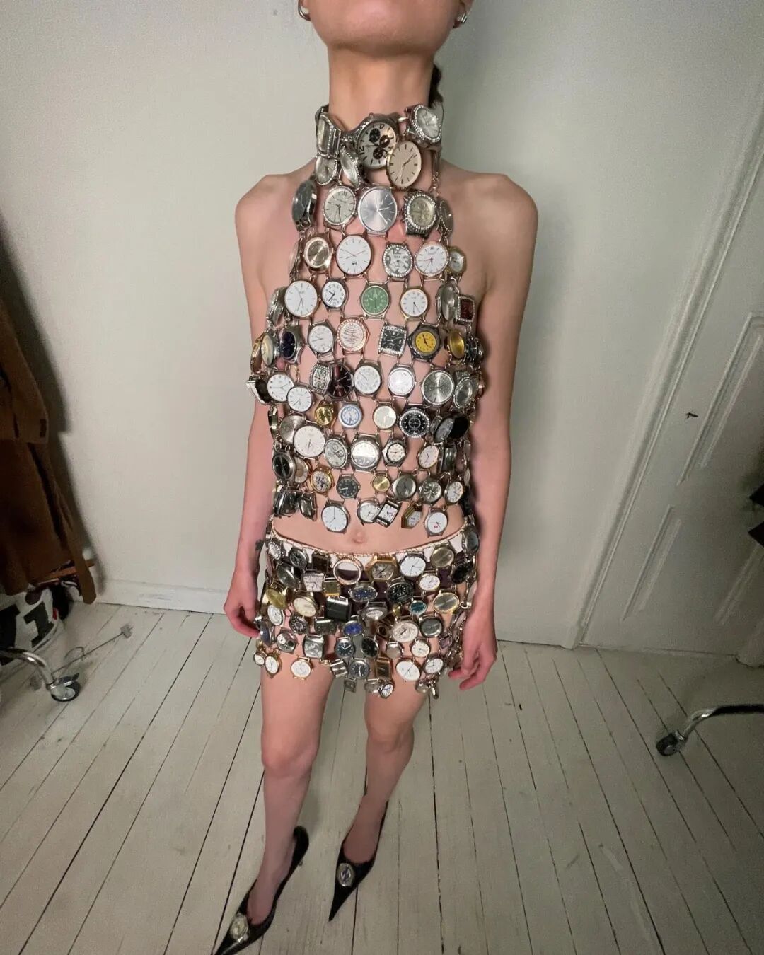 由于Ellen Hodakova Larsson常从复古服装中汲取灵感,所以“时间”是她作品中反复出现的主题也就不足为奇。上一季,她通过腕表来表达时间的概念。