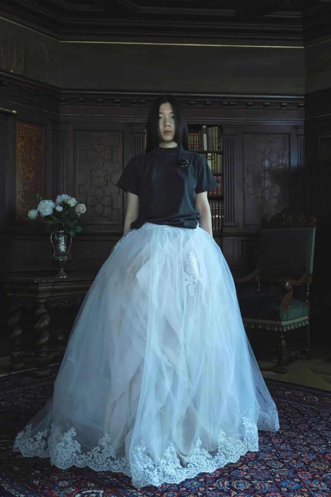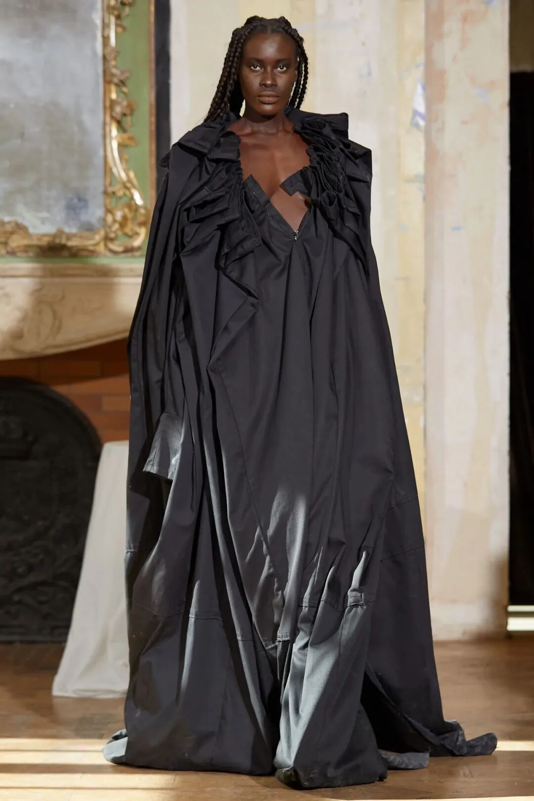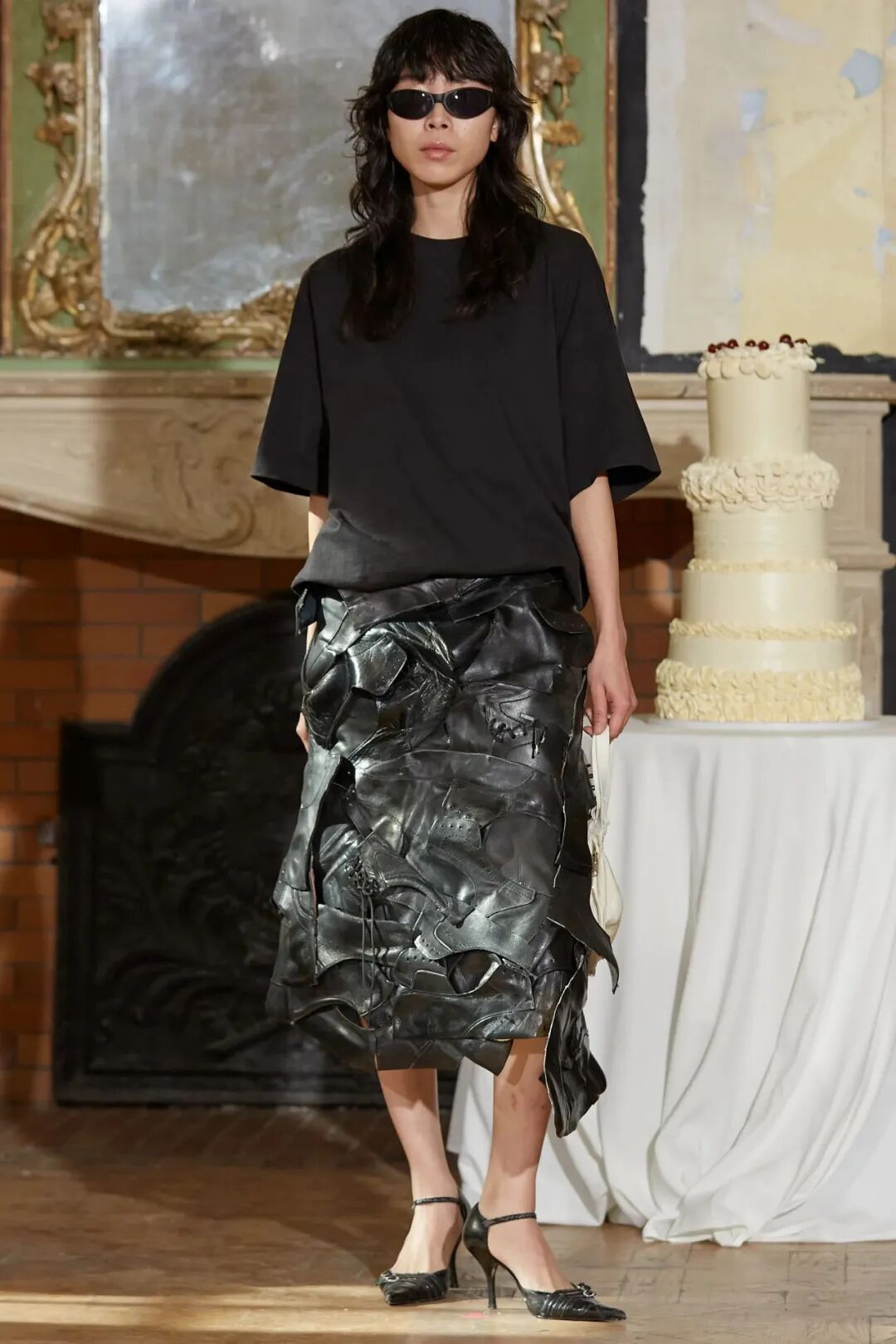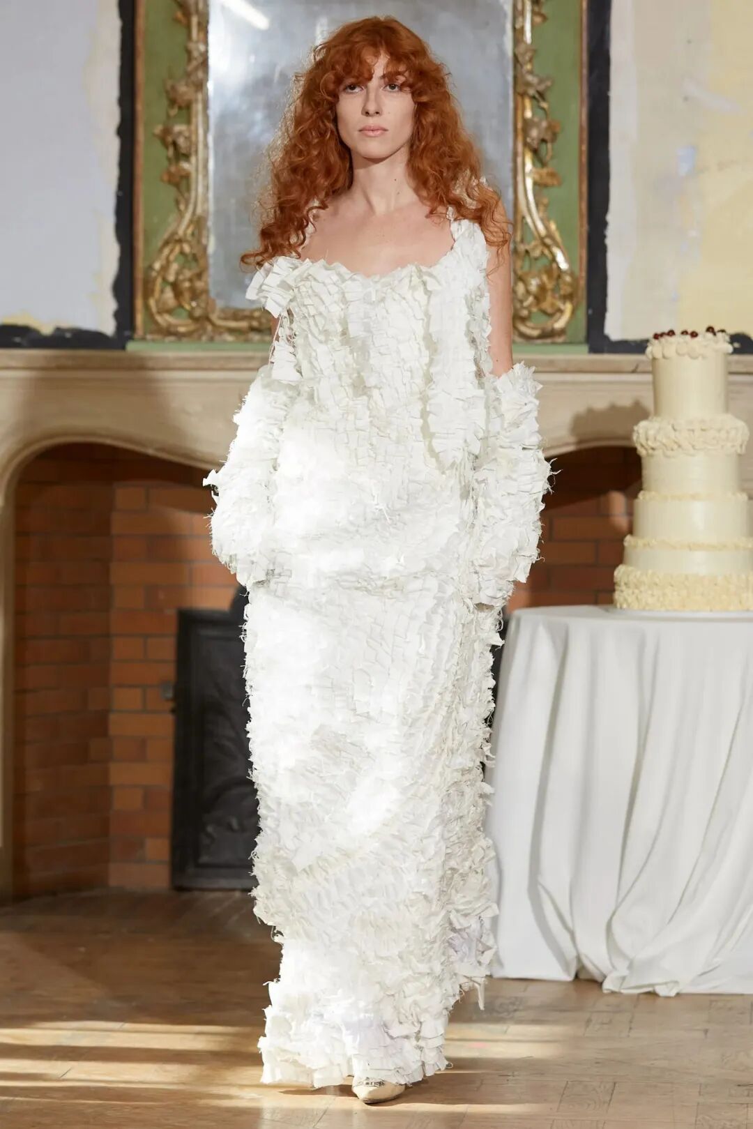 “为什么是蛋糕?” 设计师说,“我认为是时候来庆祝这种工作方式(利用现有材料进行大量的手工制作),而不是仅仅把这个行业看作是一门生意。我认为时尚带来了快乐——这就是你开始做它的原因,所以我真的想把这种感觉带回来。我也很自豪,因为我们确实在做这件事,而且我们花了这么多时间一起做这件事,我们的小团队,所以蛋糕只是为了庆祝这个系列。”