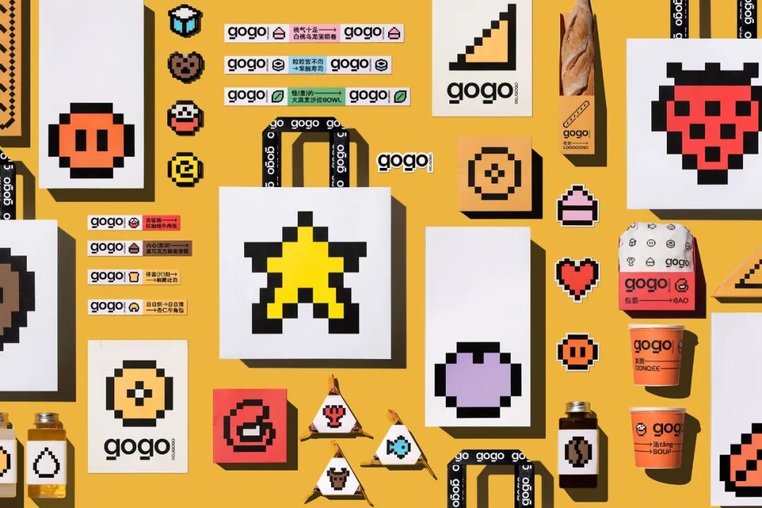 Deligogo是由北京地铁公司创建的一个快餐和便利品牌。它于2021年7月推出,通过手机下单,然后在店内取货,就在工作日的两站之间,提供快速和方便的膳食选择。该设计的灵感来自于北京人平凡的日常通勤,使用的图形类似于电子游戏中玩家的拾取物品或“buff”,为通勤者在日常繁忙的超级城市生活中提供补充。