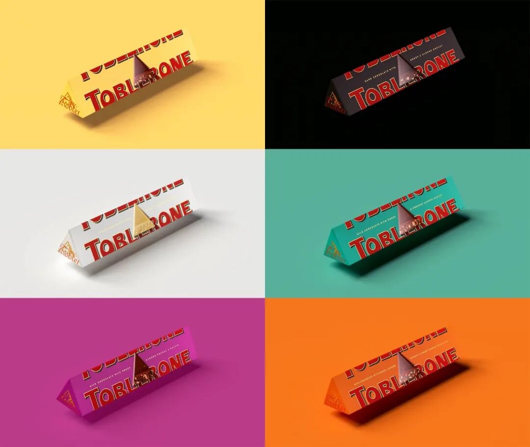 Toblerone于1908年问世,由于其独特的三角形形状和包装,以及在全球机场免税店的强大影响力,它是世界上最知名的巧克力之一。旧的包装很好,它显然从未妨碍过销售,但新的包装要有趣和令人兴奋得多,它将文字标志平行地包裹在角落里,使人无法抗拒地想把三角形的包装转来转去。