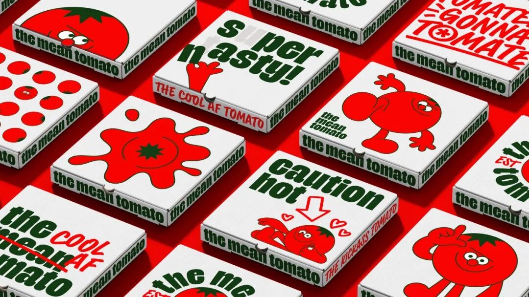 The Mean Tomato于2022年推出,是一个新的纽约式披萨品牌,专门通过美国和英国的送货服务Gopuff提供。为了脱颖而出,品牌创造了一个行为有点不同的比萨饼品牌。字体设计在这一形象中发挥了特别重要的作用。由于有两种截然不同的声音在争夺注意力,我们需要两种能够体现其个性的字体:有足够的视觉对比,将它们拉开,让它们相互影响。