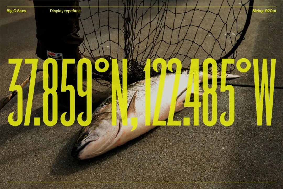Big C Charters是一家在旧金山湾区提供钓鱼、观鲸和游船游览的包船服务。除了Big C符号外,还为该品牌开发了一种显示字体Big C Sans。这个定制字体的灵感来自于包机的方言,扩展了符号的语言。它的特点是拉长的字母形状,具有渔钩/波浪状的特征,将早期San-serif字体的古朴与现代字体相融合。它的使用产生了一种高影响力的精品外观,是可识别的“大C”。