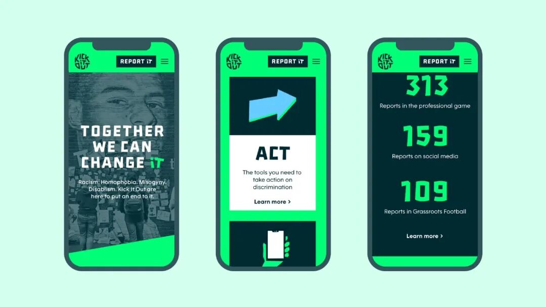 Kick It Out成立于1993年,是一个总部设在英国的倡导组织,打击足球世界中的歧视。Kick It Out的品牌、营销和传播主管Hollie Varney说:“明年是Kick It Out成立30周年,我们知道我们需要更新我们的方法,使我们的品牌形象现代化,以反映我们正在进行的工作和我们想要接触的受众。自1993年成立以来,Kick It Out在足球领域已经有了强大的品牌影响力,我们希望确保我们在此基础上不断发展,同时也能灵活地扩大我们的职权范围和影响--我们相信我们的新品牌标识将帮助我们做到这一点。”
