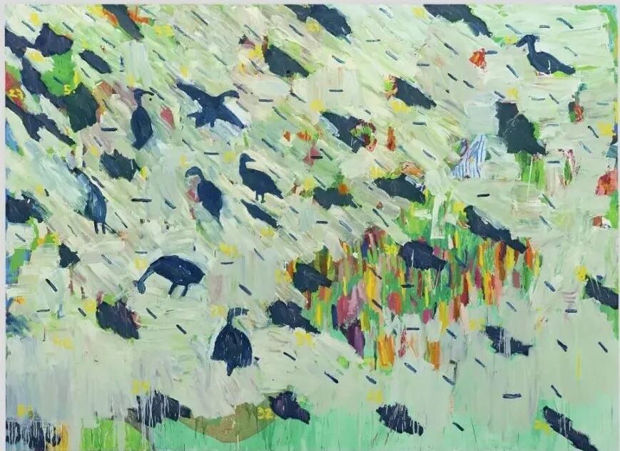 布鲁诺·邓利的作品从发现的图像和对绘画本质的分析开始,其中语言代码,如手势、平面、表面和表示,被理解为一个共享的词汇。他说最新作品的视觉多样性。图像的功能发生了根本性的变化,不相信一种独特的表现形式,不相信通过一种风格来肯定他的作品主体的独特性和强烈划分的视觉重复。这不是阐明做事的方式,可见性的类型以及对它们之间关系的反思,而是意味着构建一个有效的来维持和肯定工作。他的画布表面总是有一种主要的颜色,这表明了一种极简主义的视觉语言。