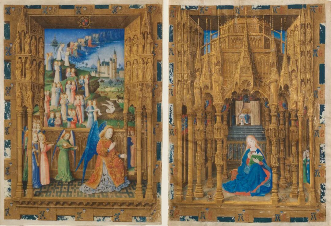 路易十一及查理八世统治时期法国最重要的宫廷手抄本画师Jean Bourdichon作品,满页的金箔奢华无比