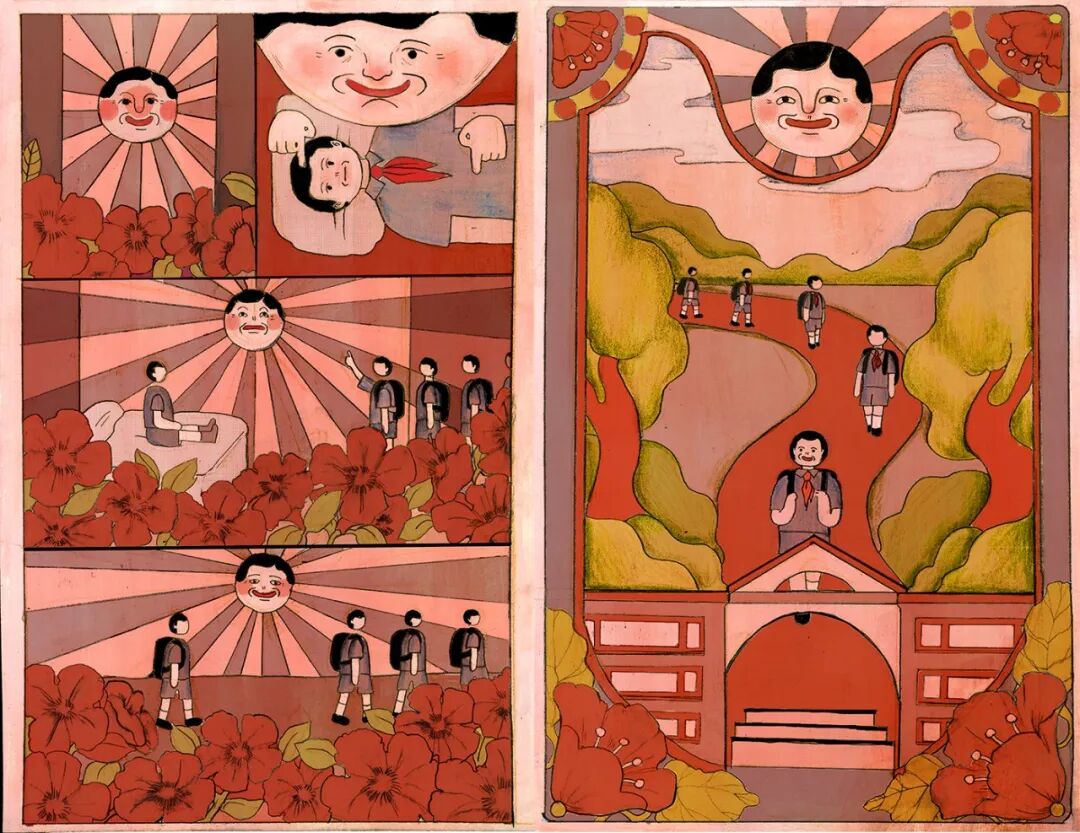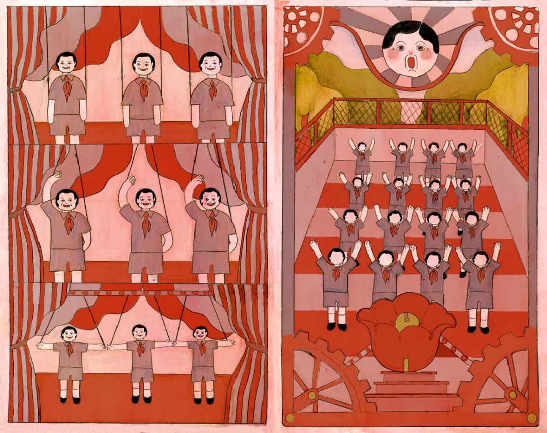 这样一份用来抚慰平凡自己的虚假指南,用刻意营造的僵硬氛围来表现其虚幻,是因为她曾经被孤立过,想被所有人看见并偏爱,明知悖论,便只能将自己的臆想放进画中。