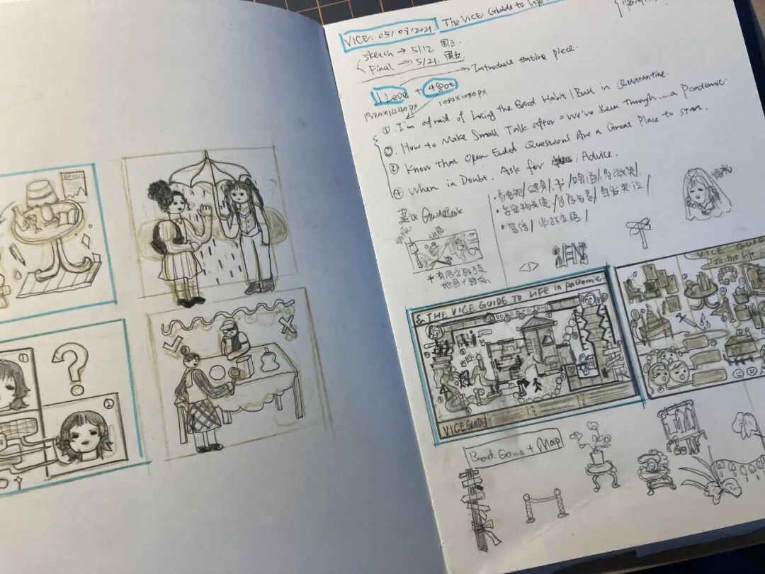 初中时Vanilla Chi和好朋友是宣传委员,包揽了所有的黑板报、班级外墙的宣传海报啊,每周都去报刊亭等最新的绘本和漫画杂志。她还有一个本子专门画自己的连载漫画,在全班传阅。