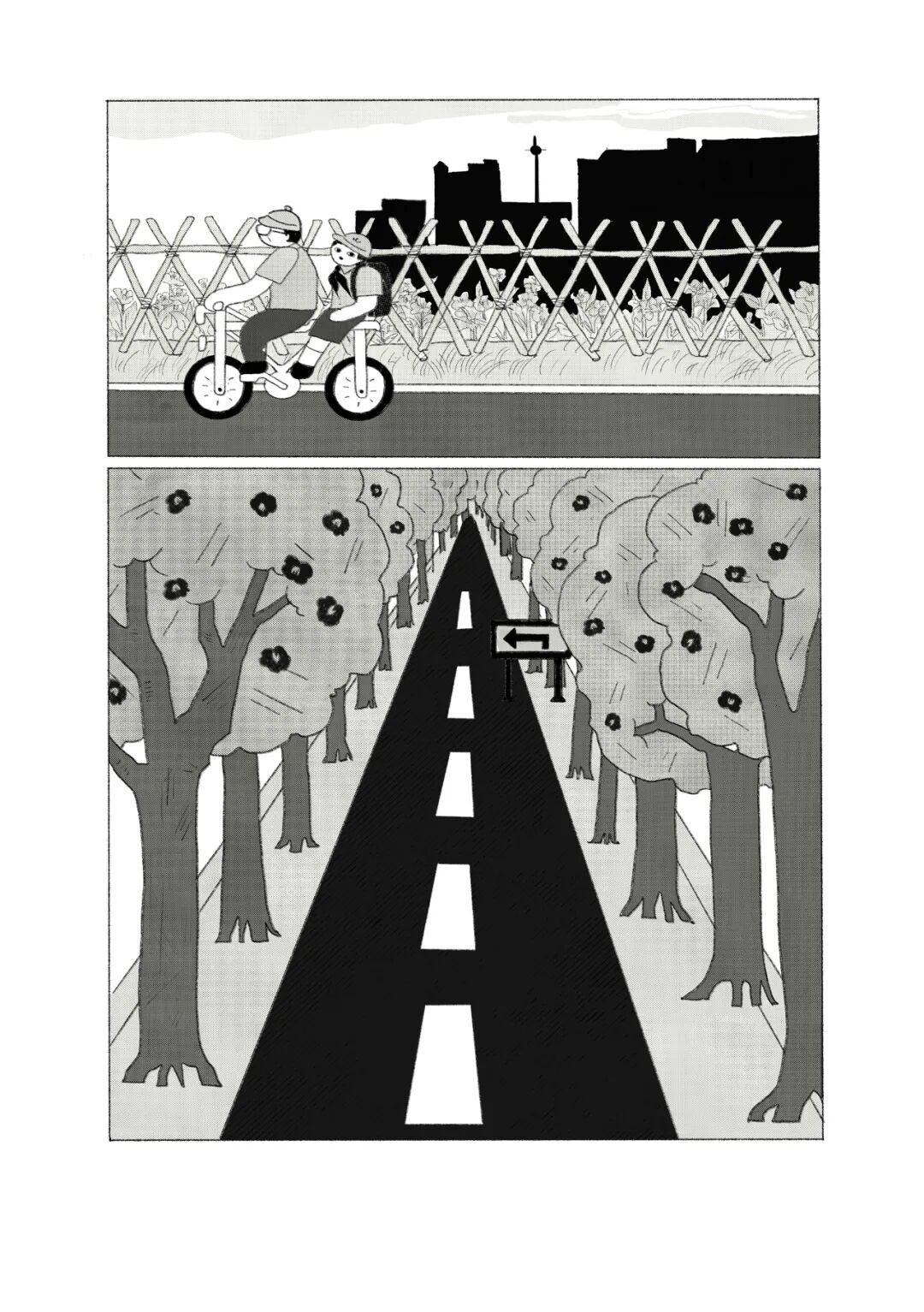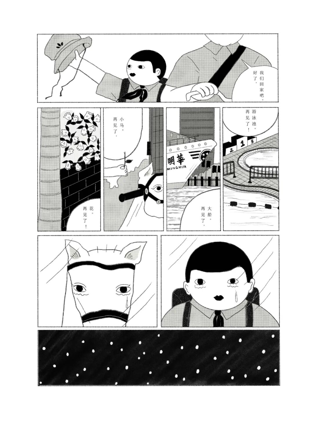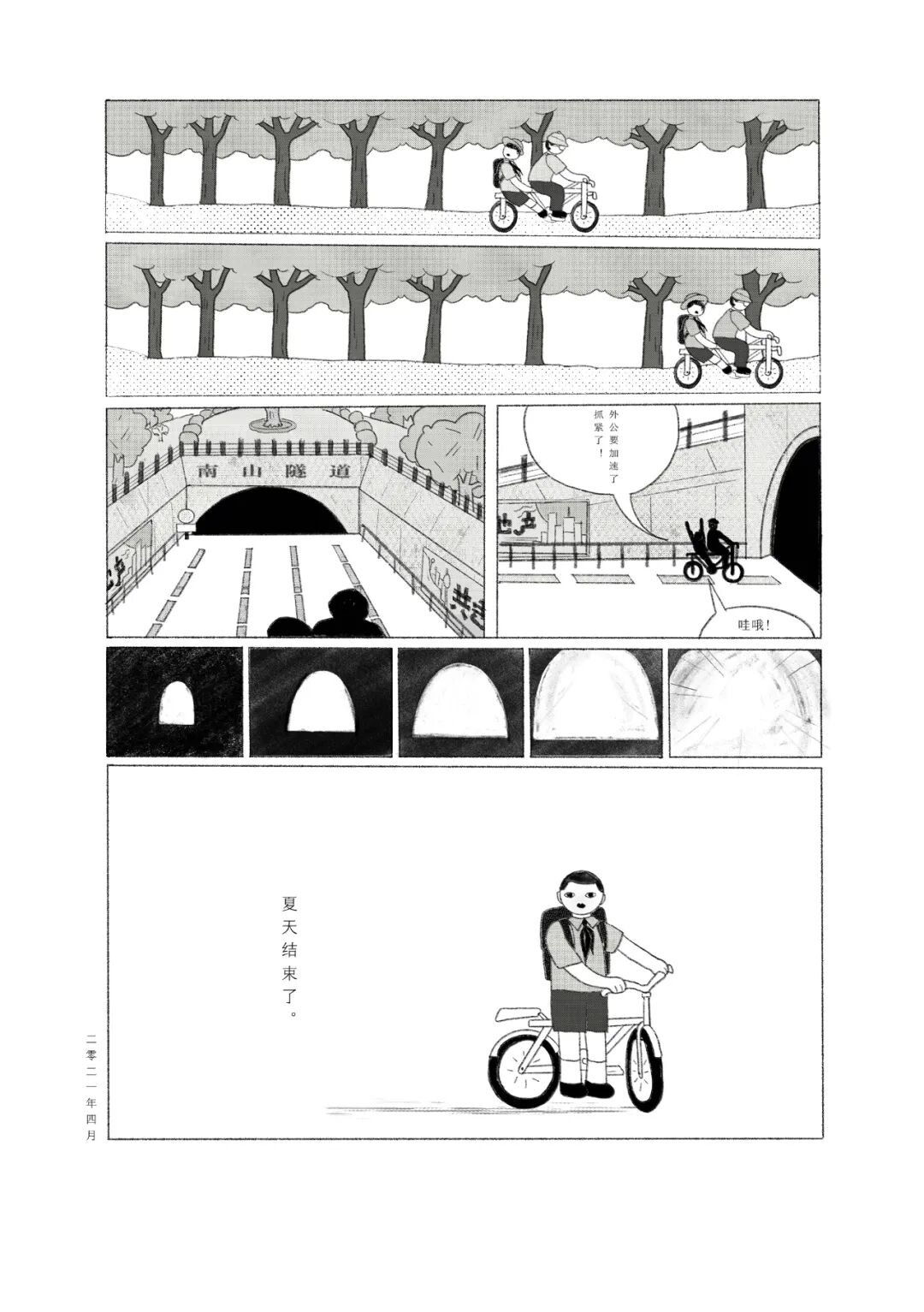 《回声》是一个很日常的故事,只是外公骑着自行车接她从幼儿园放学一路回家。但她在画完这个故事以后,才意识她画的是长大的氛围。