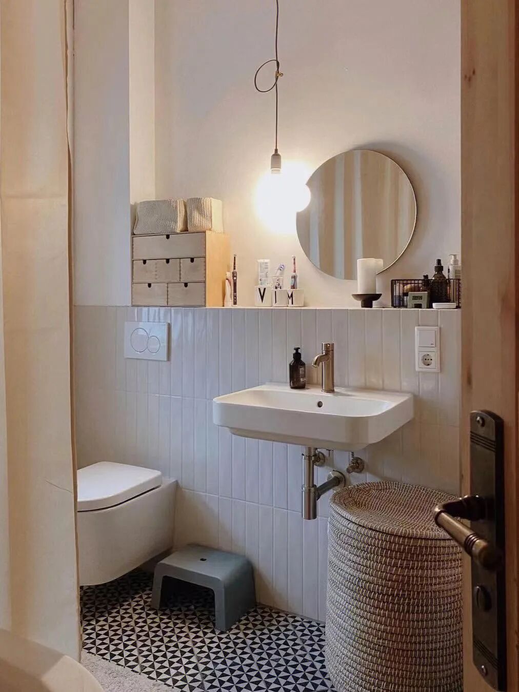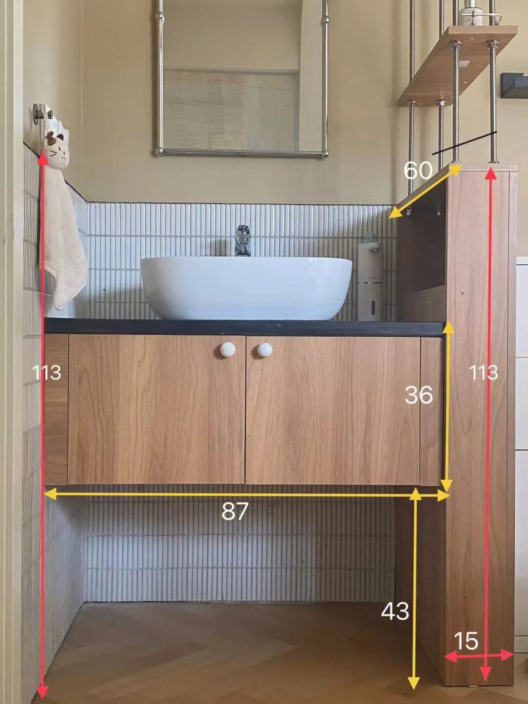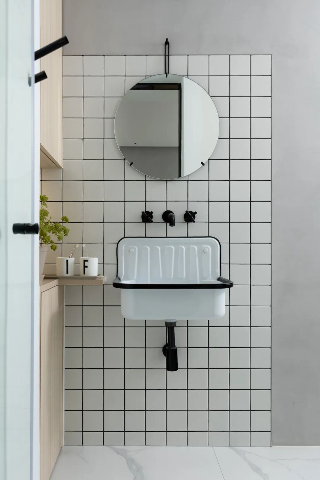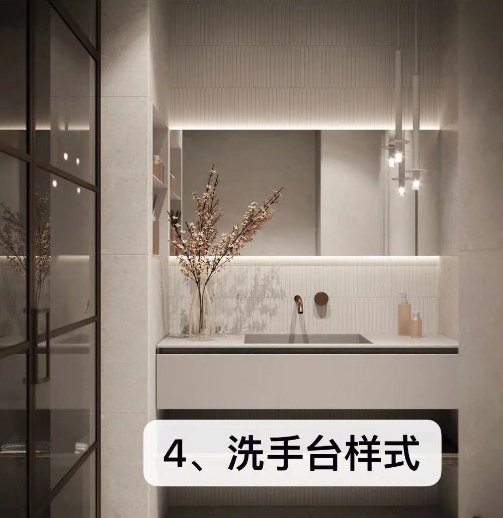 ✎ 硬装主材:小白砖&雪花柔光砖&微水泥艺术漆&防水涂料&定制柜