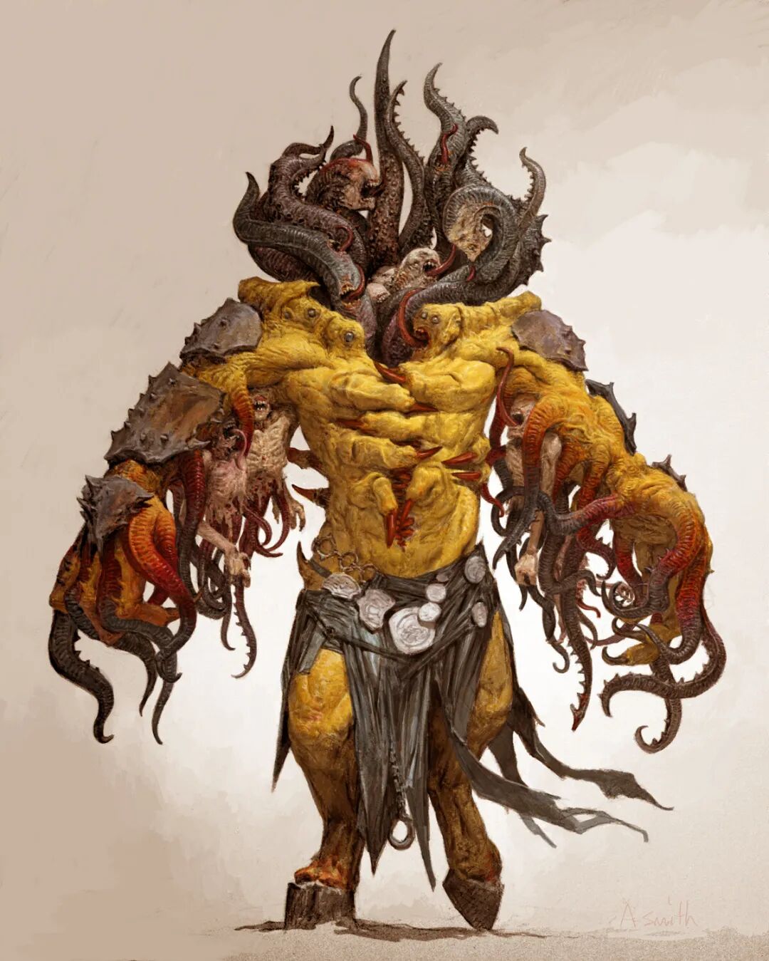 adrian smith常使用传统和数字绘画相结合的方式创作,作品题材范围覆盖面广,世界观设定的深度、想象力以及浓郁的黑暗奇幻风格非常吸引人。