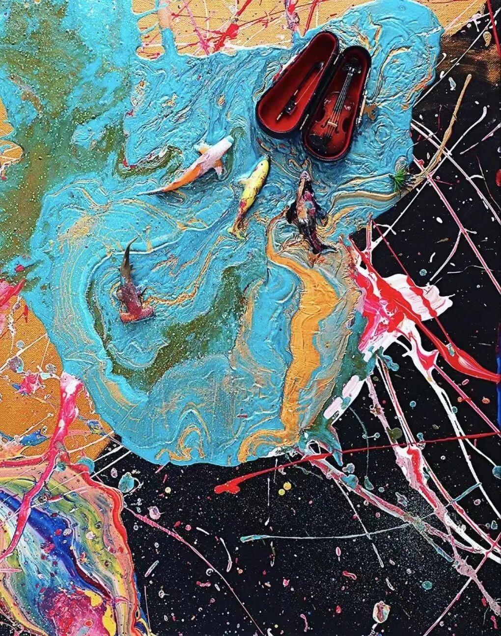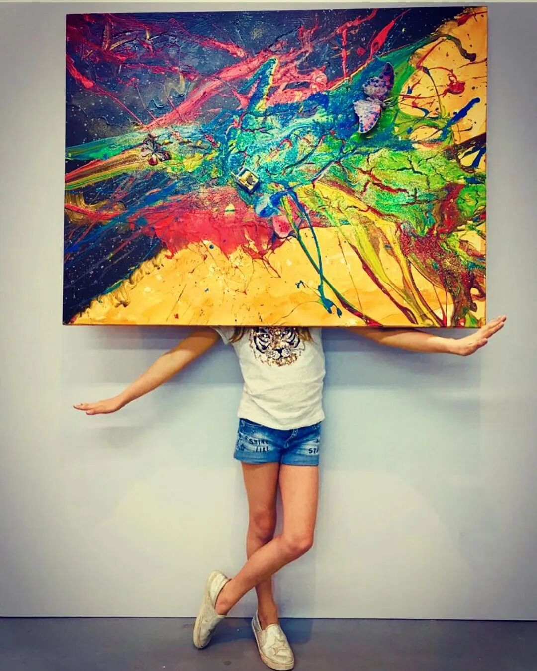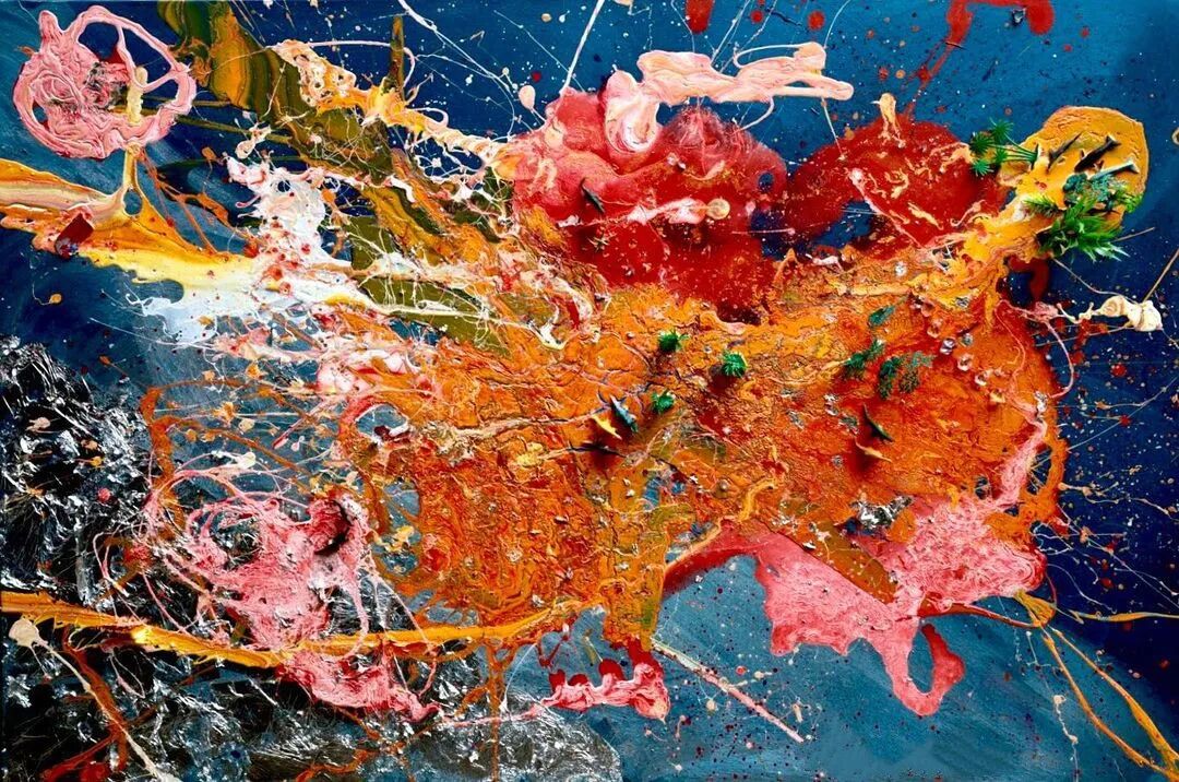鲜艳的色彩、颜料的飞溅,创造了一个进入艺术家世界的入口,漩涡和飞溅、闪光和小球,作品的美丽和大胆令人振奋和敬畏。