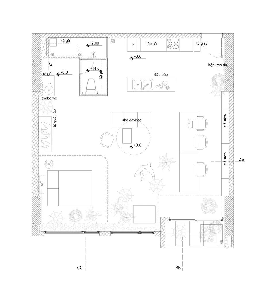 这间公寓位于越南胡志明市,室内面积75㎡,户型方正,完全敞开的格局,没有隔断。
