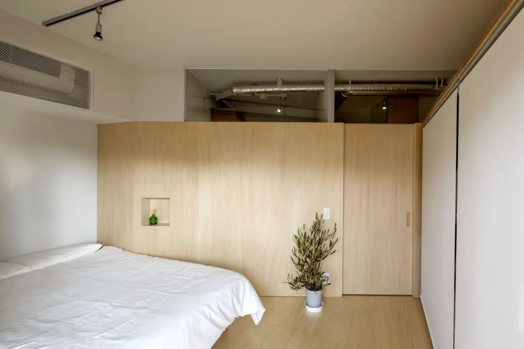 同时,植物也起到了软隔断的效果,穿过“植物园”便是卧室。