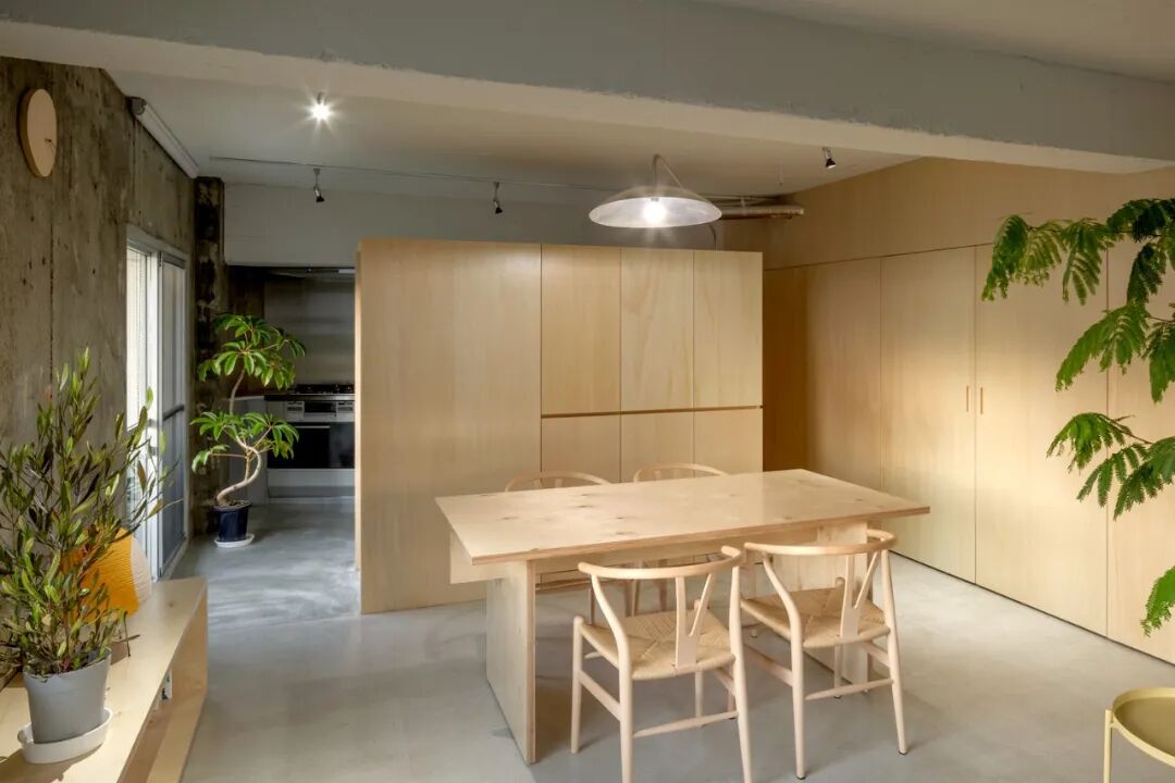 这间“毛坯房”的设计就来自日本神奈川,相比其他毛坯风,这间毛坯房的设计用到了大量的原木材质,整体气质很接近muji风~