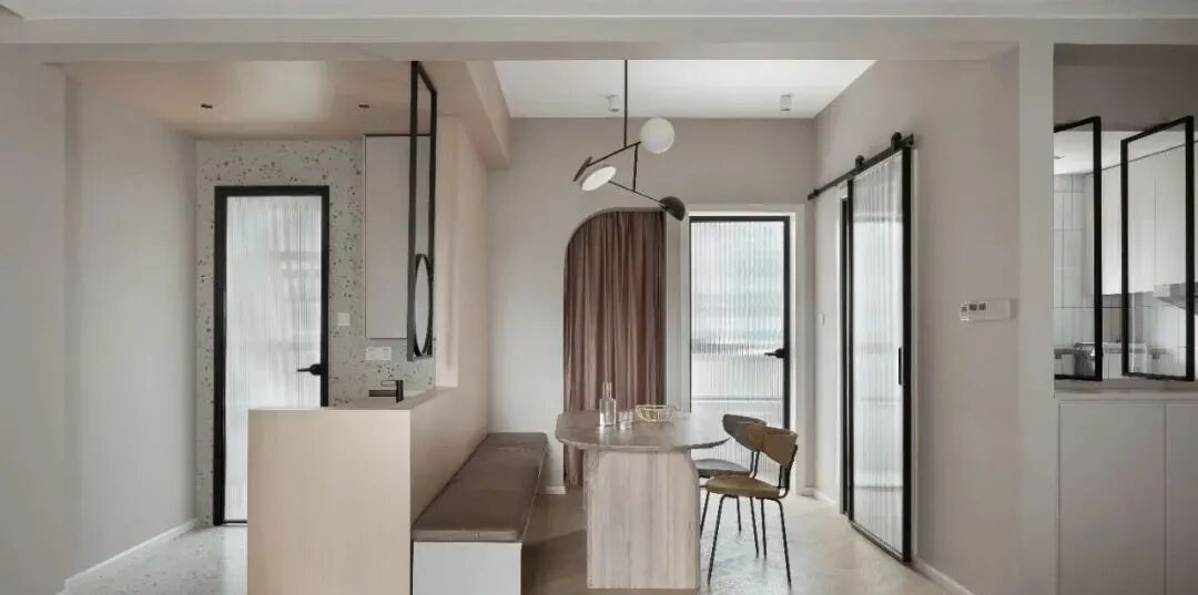 卡座用在餐厅可谓是最常见的做法,在一些家居空间当中,使用了卡座+隔断的组合,不仅可以用来区分餐厅与门厅的不同功能区域,还可以最大程度地让视野开阔,尤其适合于追求小资情调、不甘于常规设计的家庭。