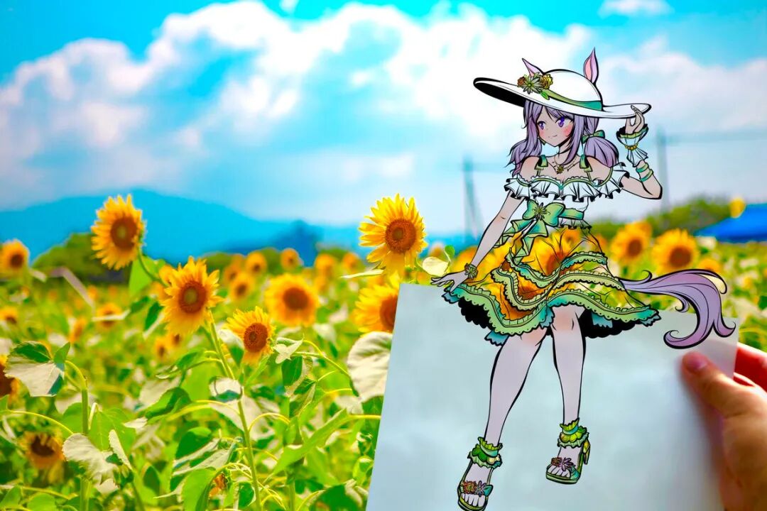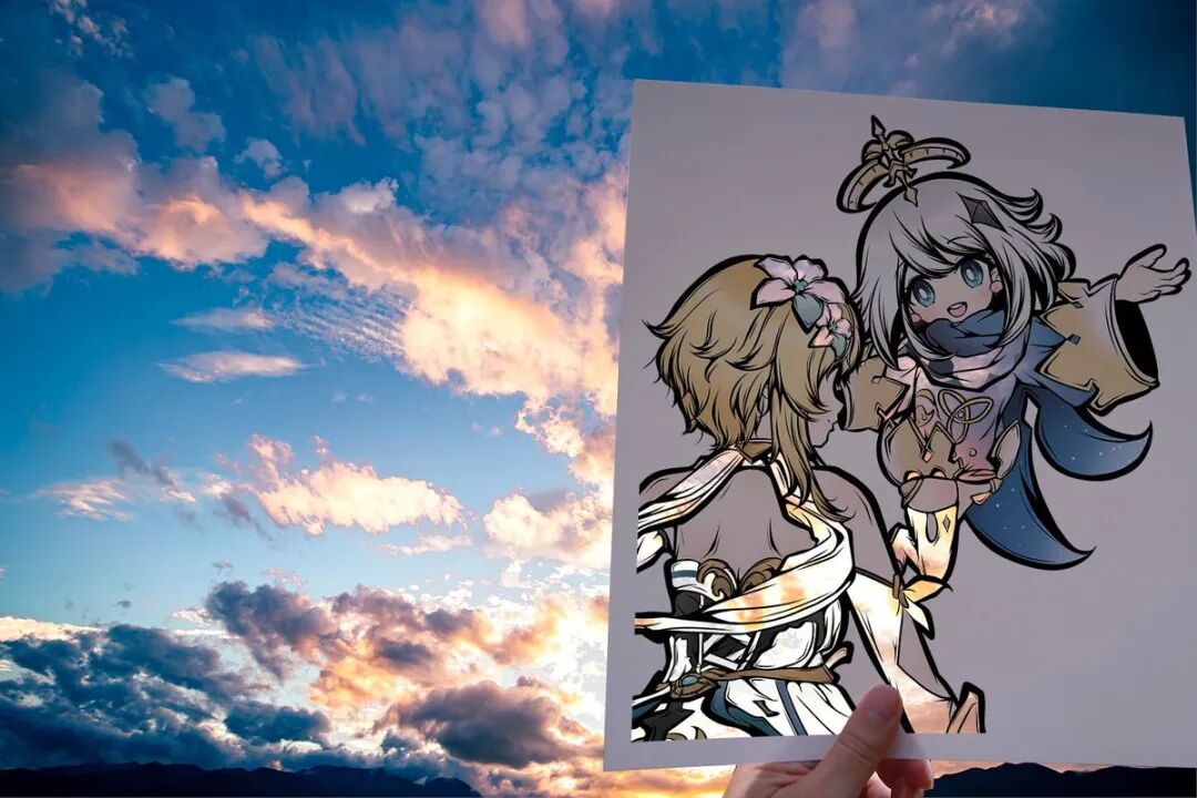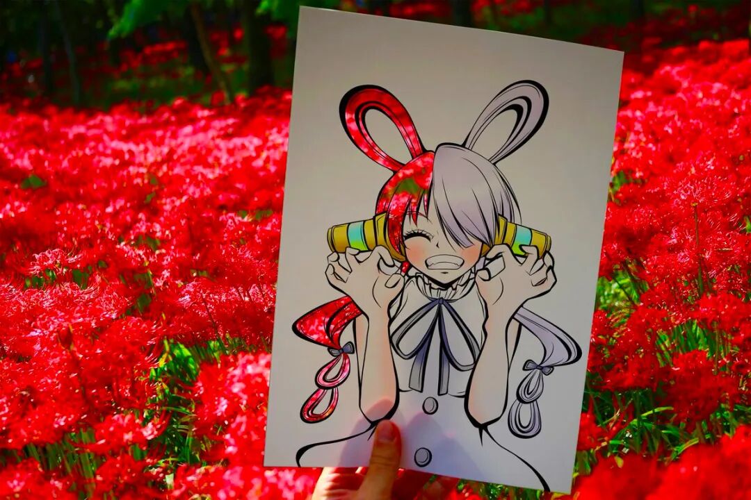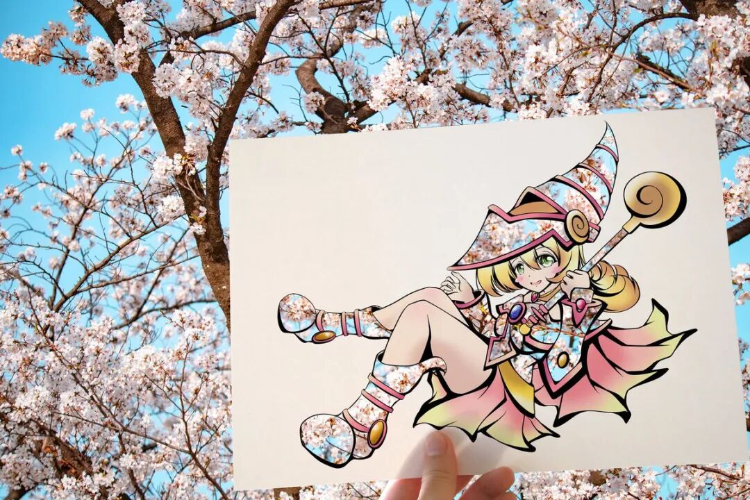 虽说虎彻是一位插画家,其实,他的作品更偏向于摄影和剪纸,这是因为,他的插画作品往往绘制在白纸上,然后用剪刀和刻刀裁剪掉插画角色身上的衣服,最后,再将绘有插画角色的纸与不同风景合照,风景中的色彩会透过剪裁的镂空,呈现在我们眼前,就像是给这些插画角色穿上了衣服一样。