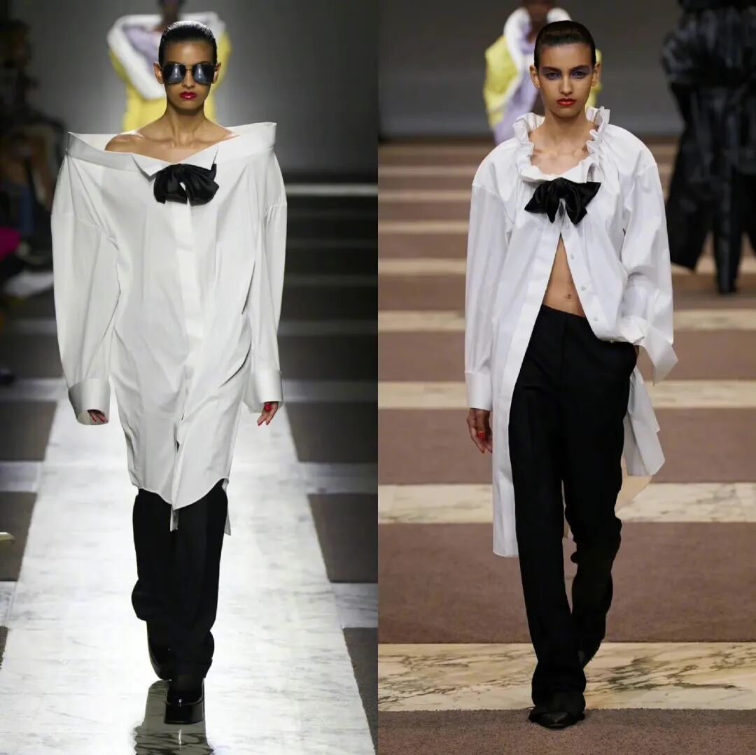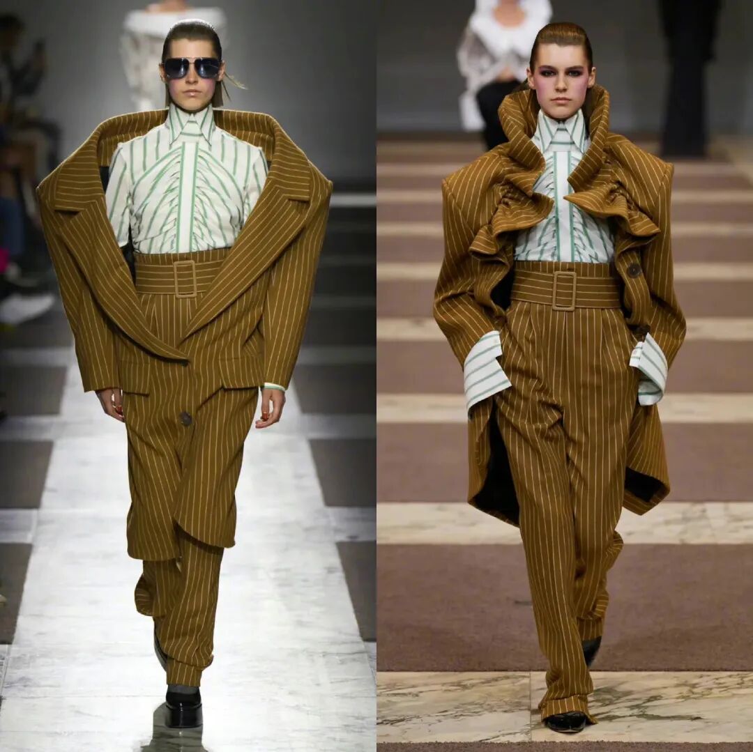 Rolf Snoeren和Viktor Horsting重新审视了男性经典剪裁,他们以一种新的眼光来看待它,并将这种极端夸张的轮廓与柔和女性的身份并置。