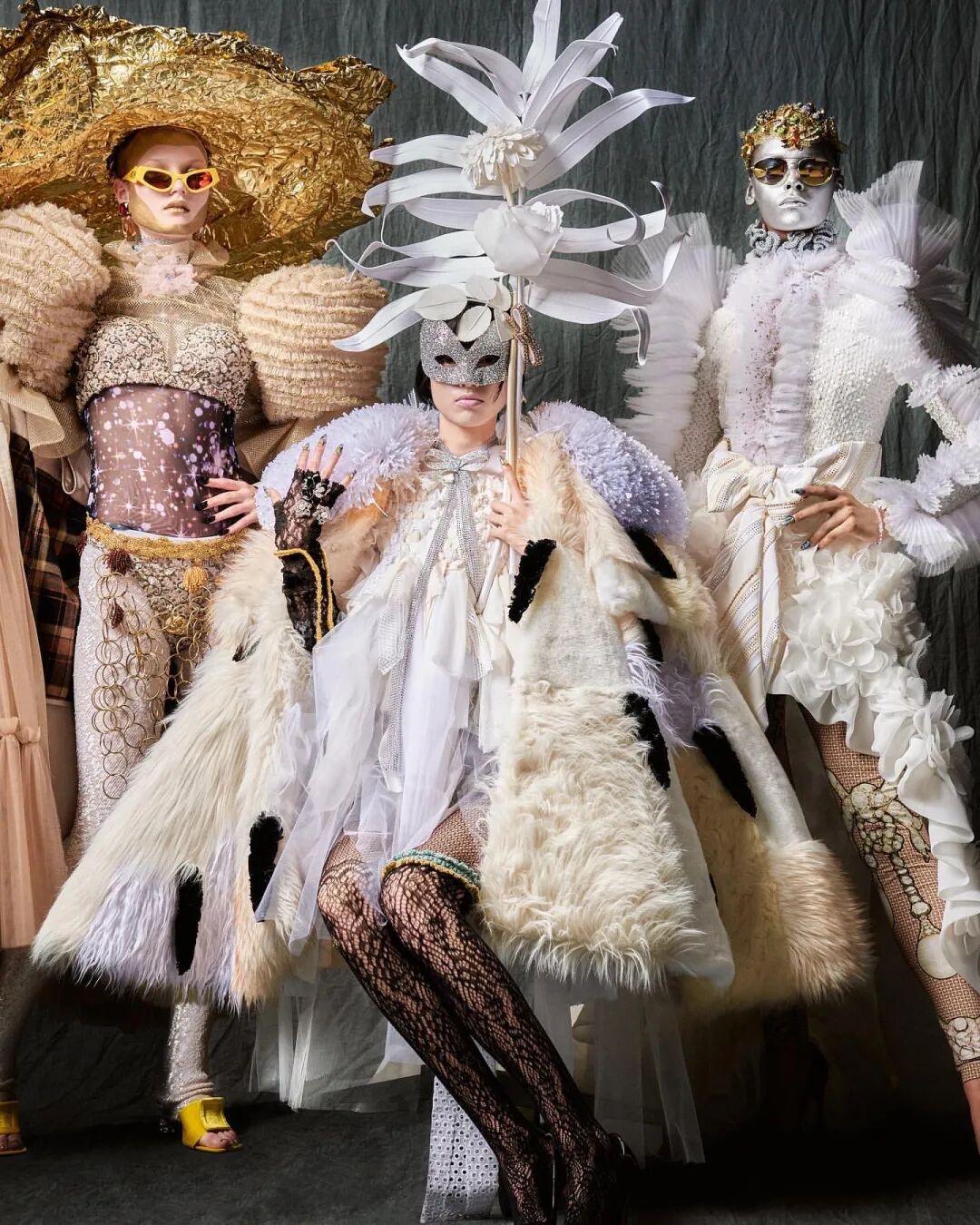 Viktor Horsting和Rolf Snoeren以荒诞的设计和鬼魅的设计概念著称,在他们的手中,高级定制变得与我们印象中的样子产生了冲突。缤纷的色彩,精致的裁剪,网络文化的融入以及荒诞不羁的风格,让一向严谨的高级定制变得俏皮且富有矛盾感。