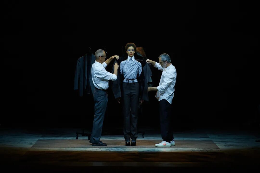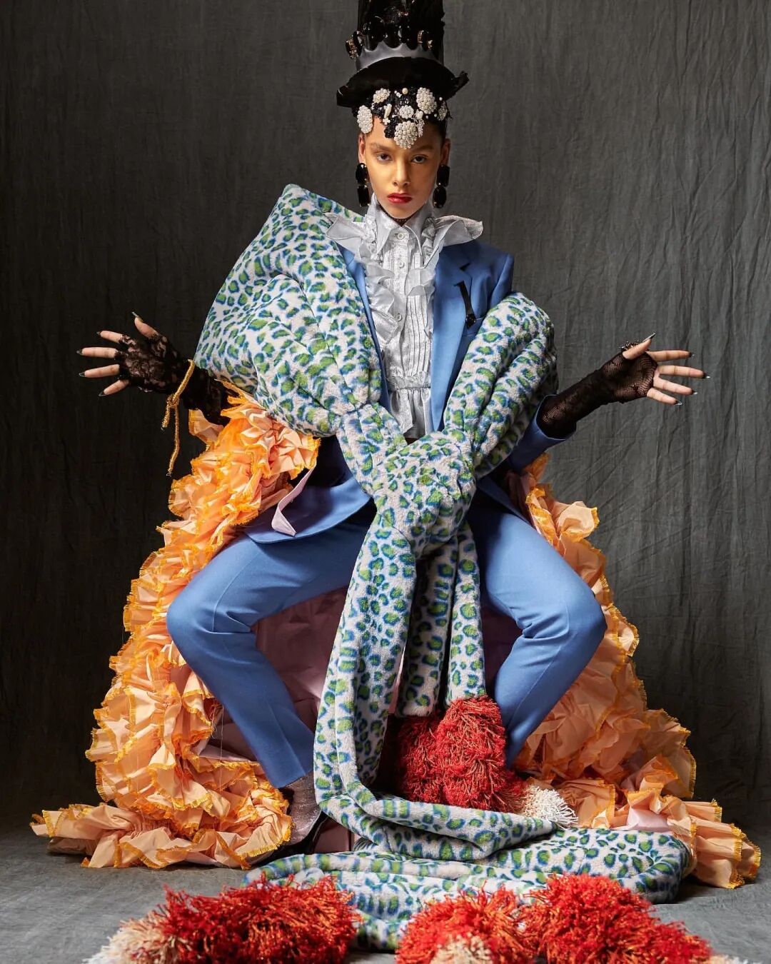 这样既暗示了男性与女性气质的相互转换,也对应了三幕剧的主题,气场爆棚的夸张版、展示变形过程和柔和浪漫的合身版。我们喜欢不合身的男性服装,不合身的男性气质,然后我们改变它,使它变得合身。”
