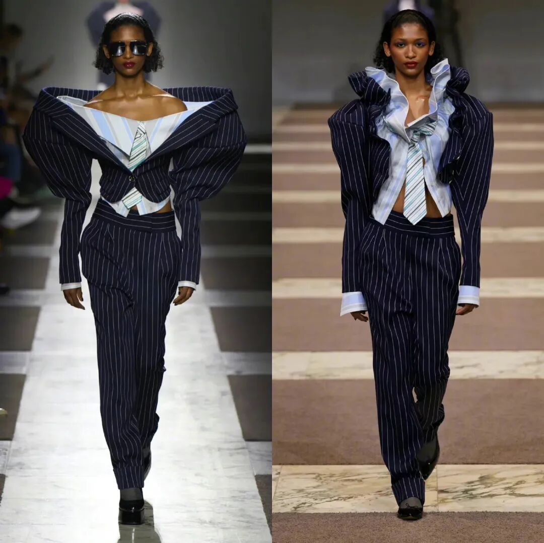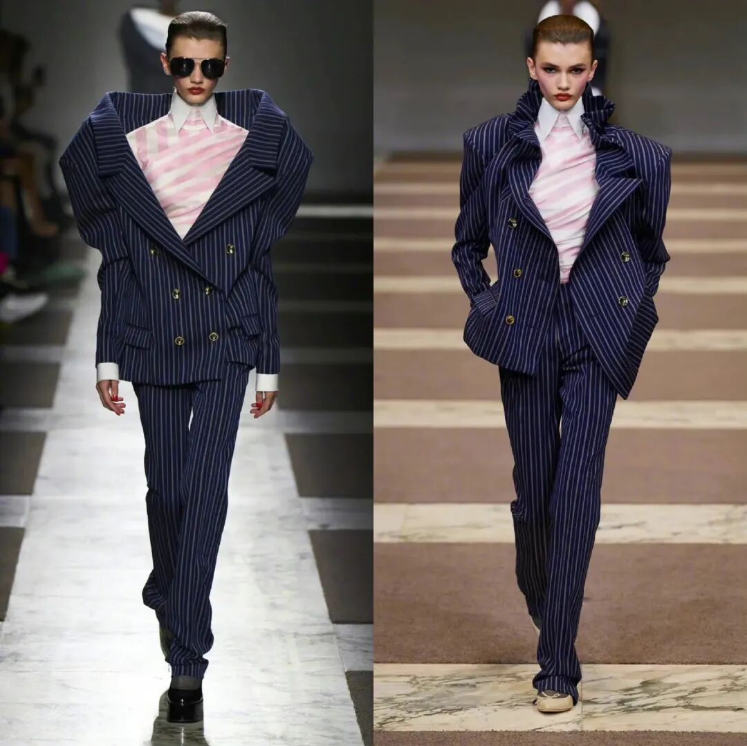 第一幕,是硬朗、夸张的廓形,即为传统意义上的“权力套装”;